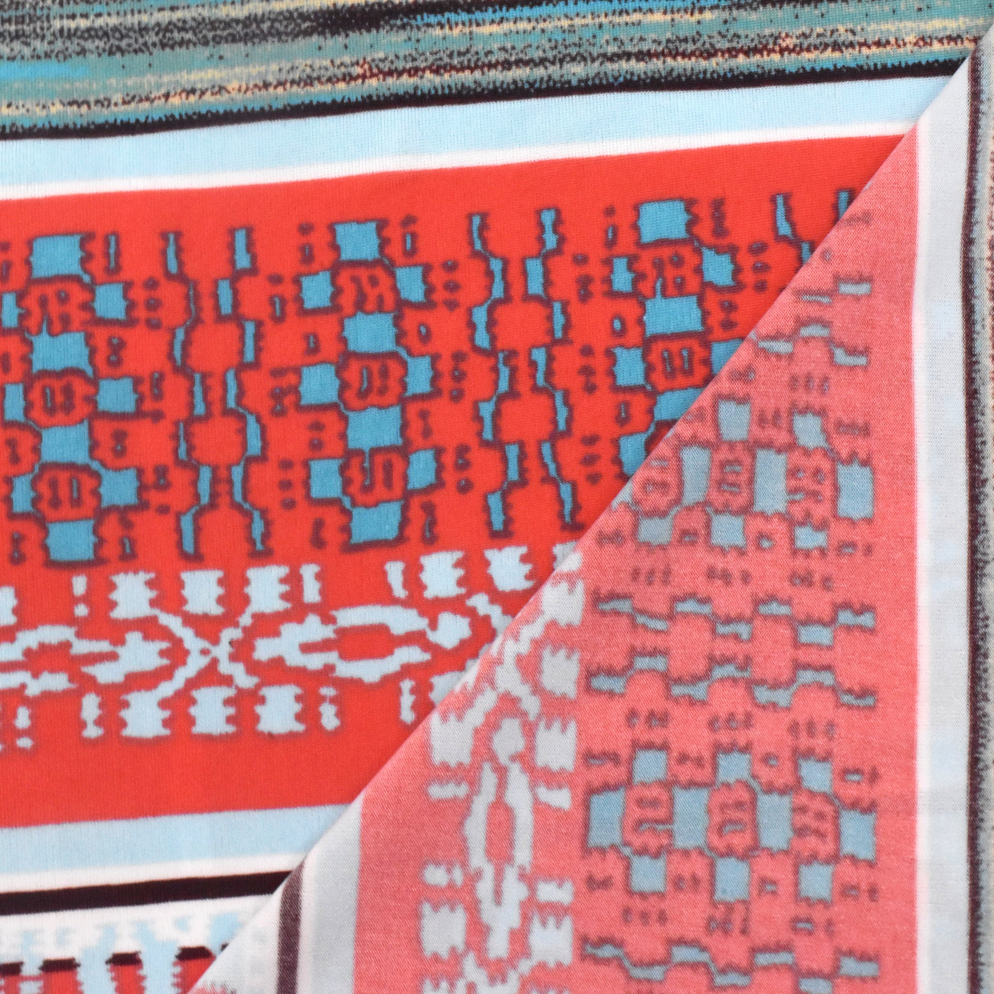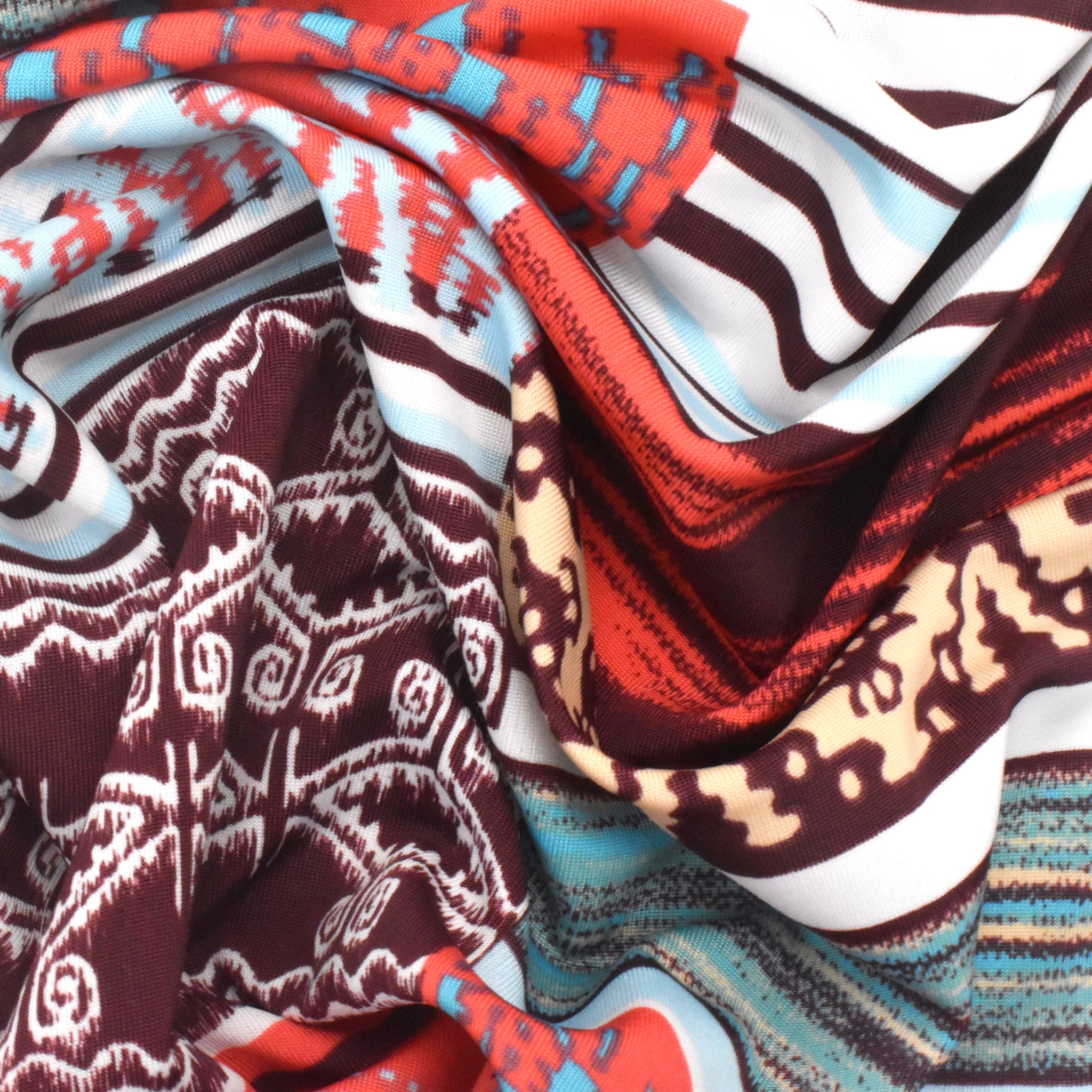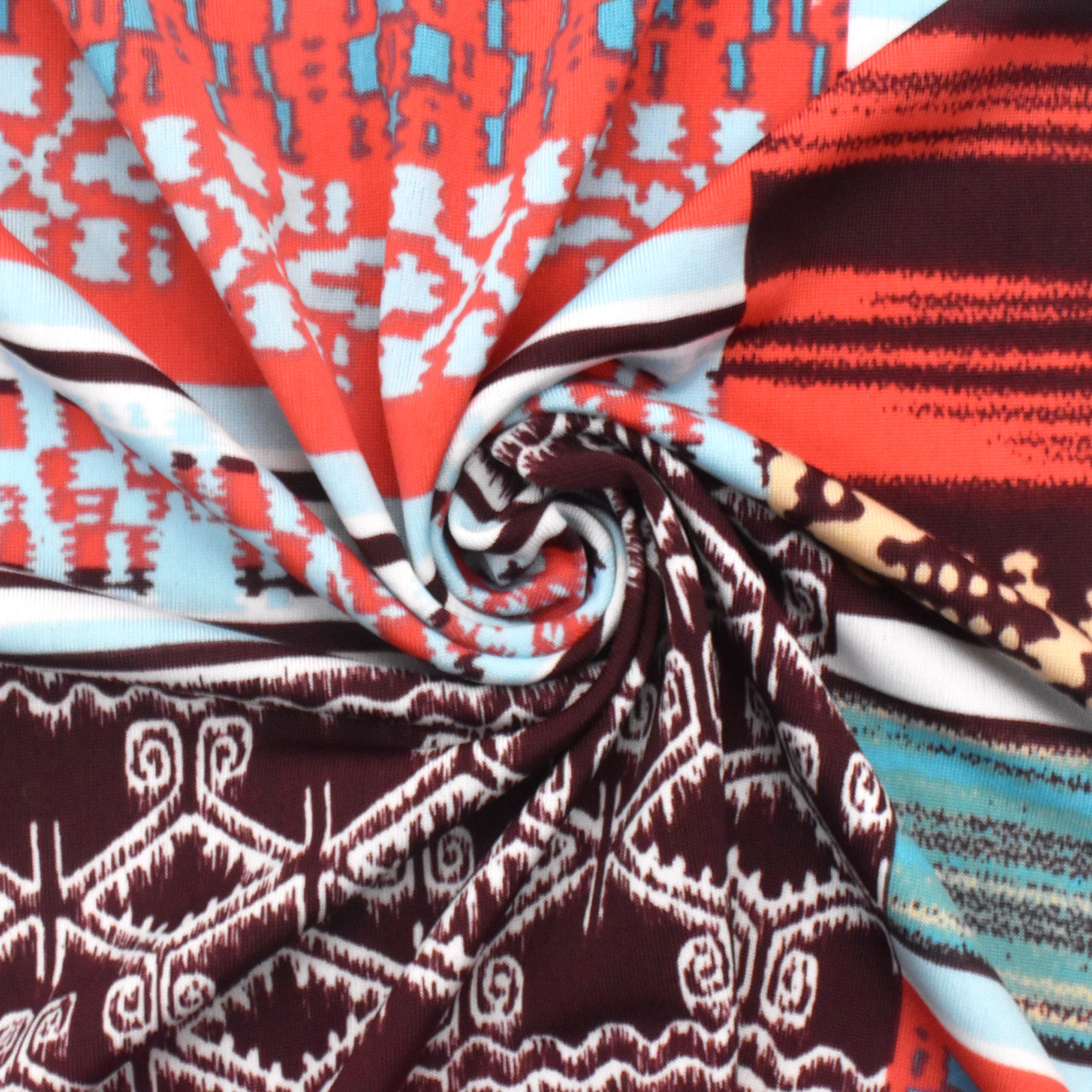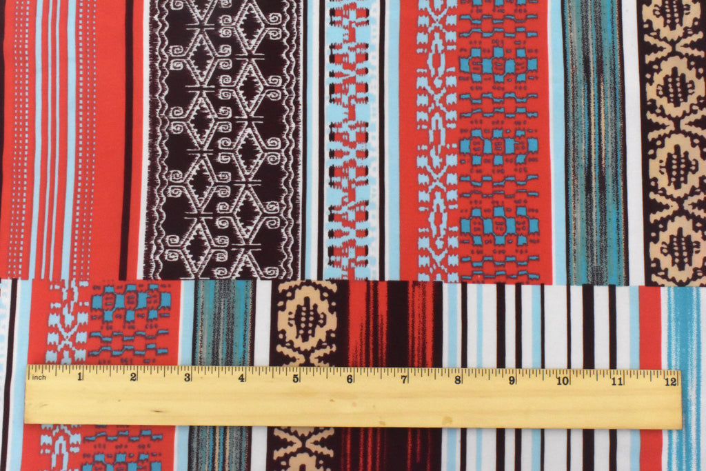 3 5/8 YD PC-Strawberry Red-Multi Stripe Aztec Printed Stretch Activewear Knit Fabric
