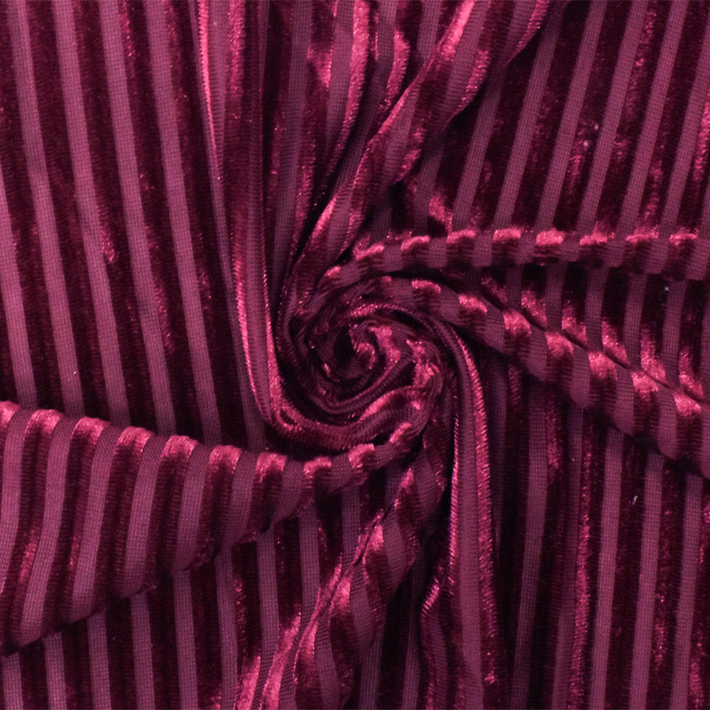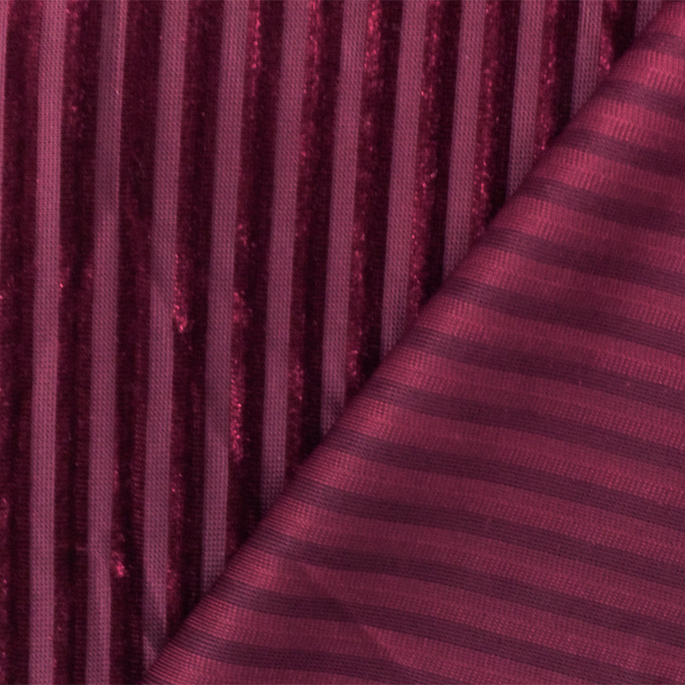 3 YD PC-Red Stripe Burnout Stretch Poly Spandex Velvet Knit Fabric