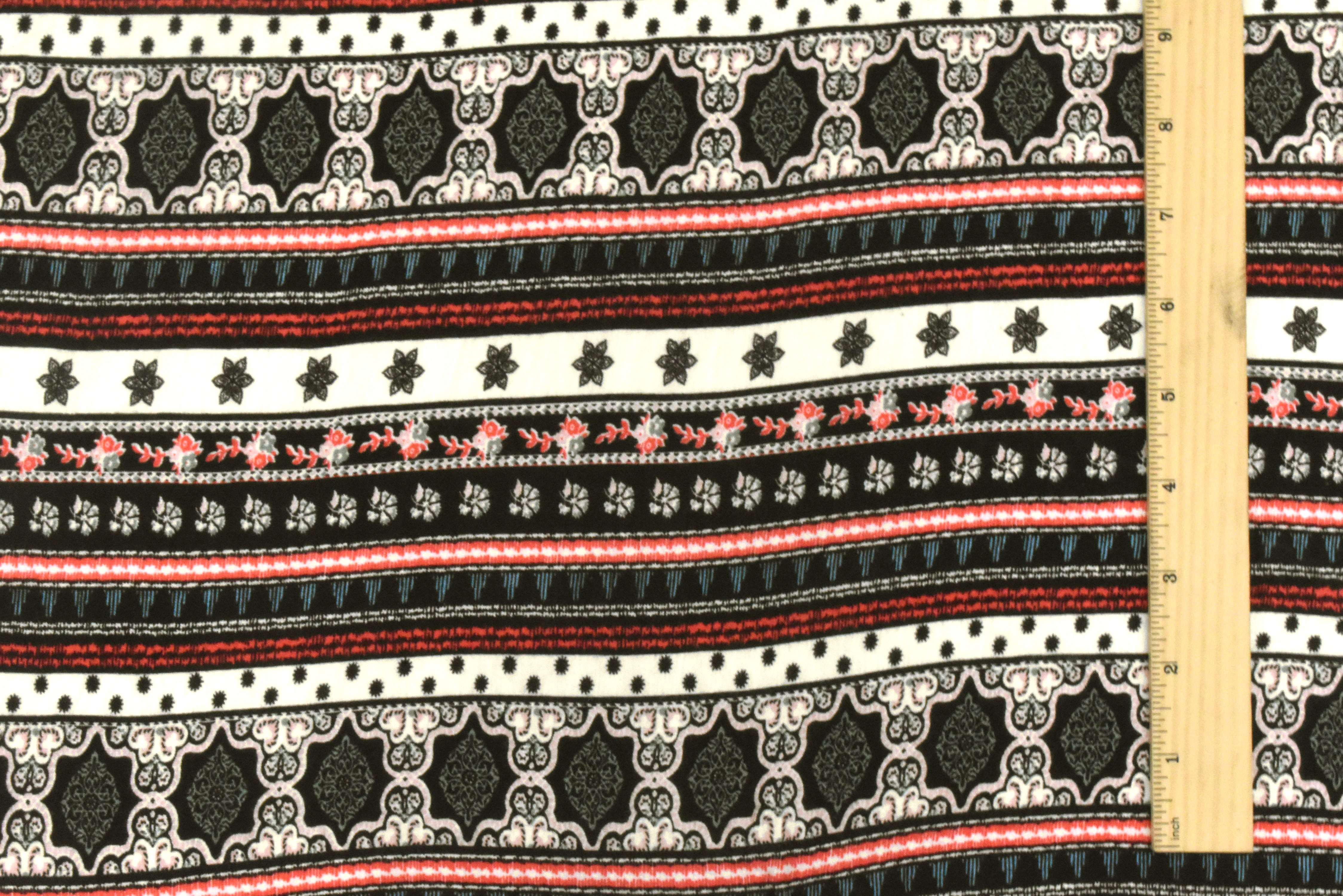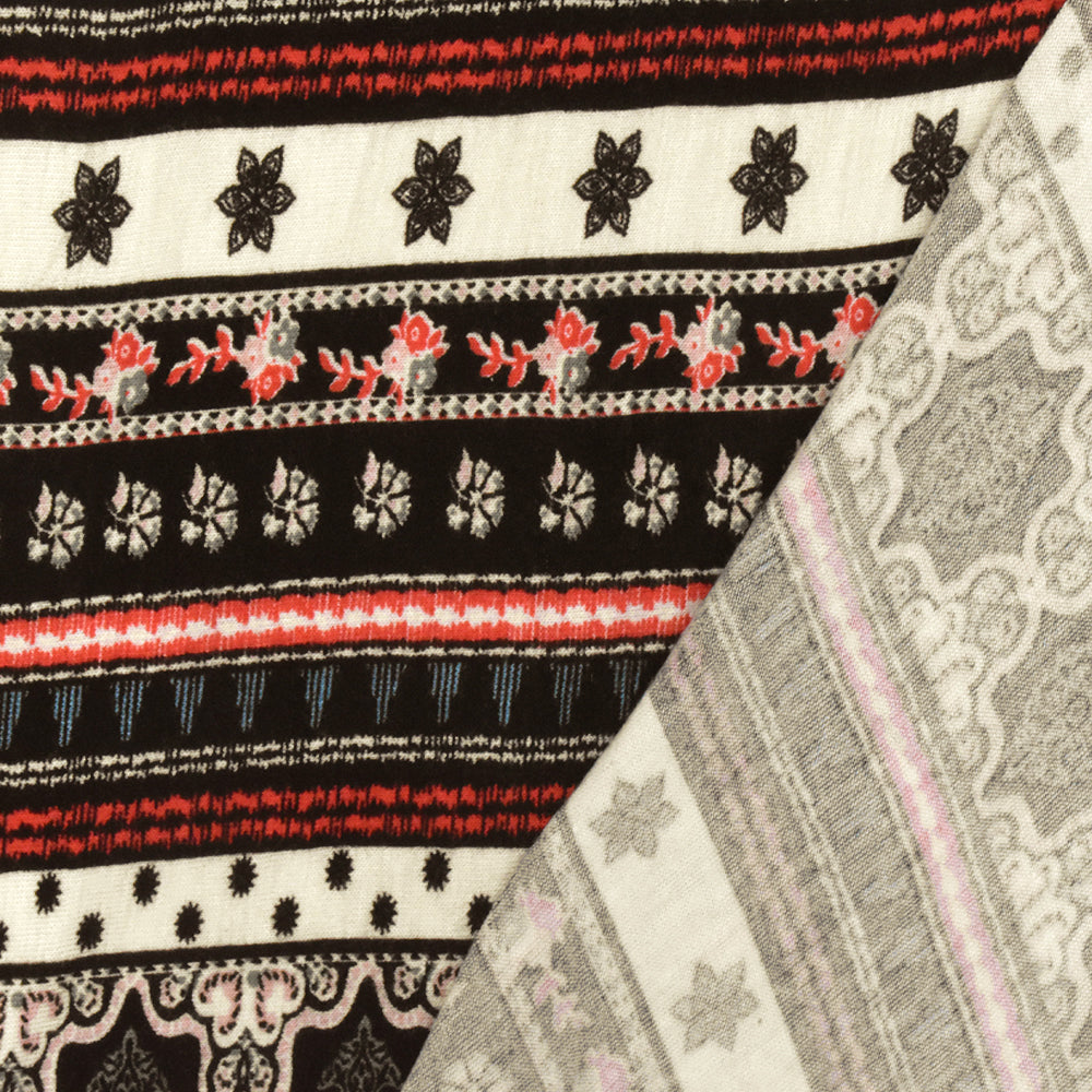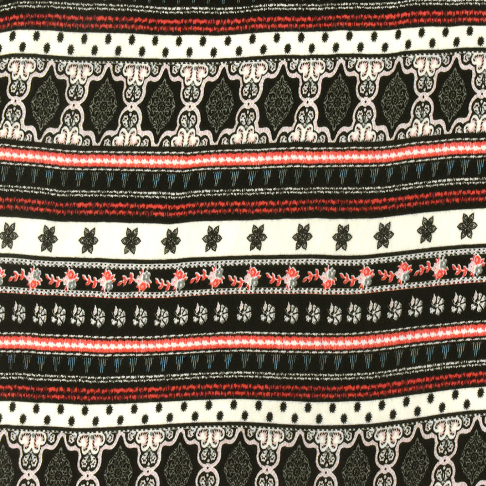 Black-Ivory-Multi Moroccan Stripe Printed Stretch Rayon Jersey Knit Fabric