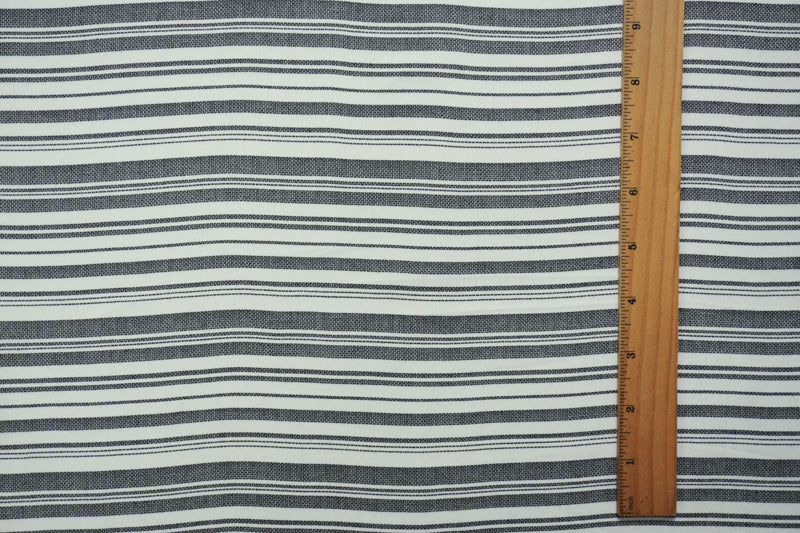 -This rayon-cotton showcases a horizontal stripe pattern enhanced by a dobby weave for a refined texture. The fabric provides a comfortable, durable hand perfect for shirting and casual tailored garments.