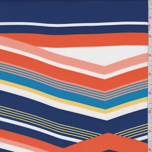 Blue/Orange/Aqua Chevron Stripe Crepe Georgette Fabric