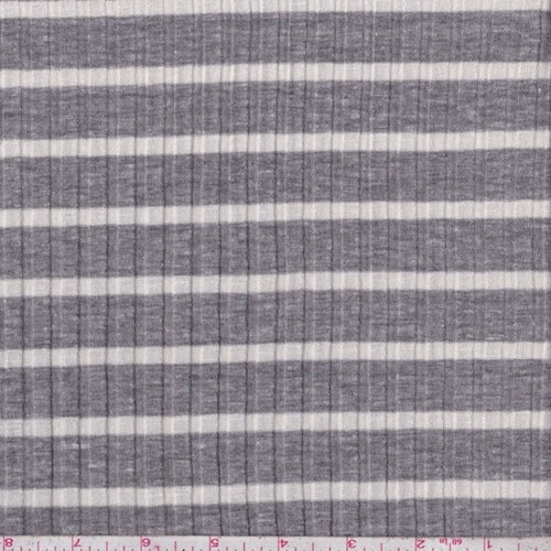 Concrete/Ivory Stripe Poor Boy Rib Knit Fabric