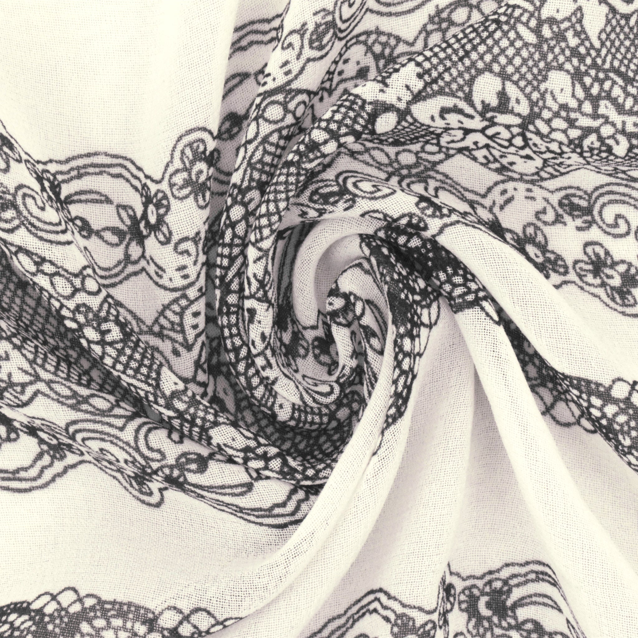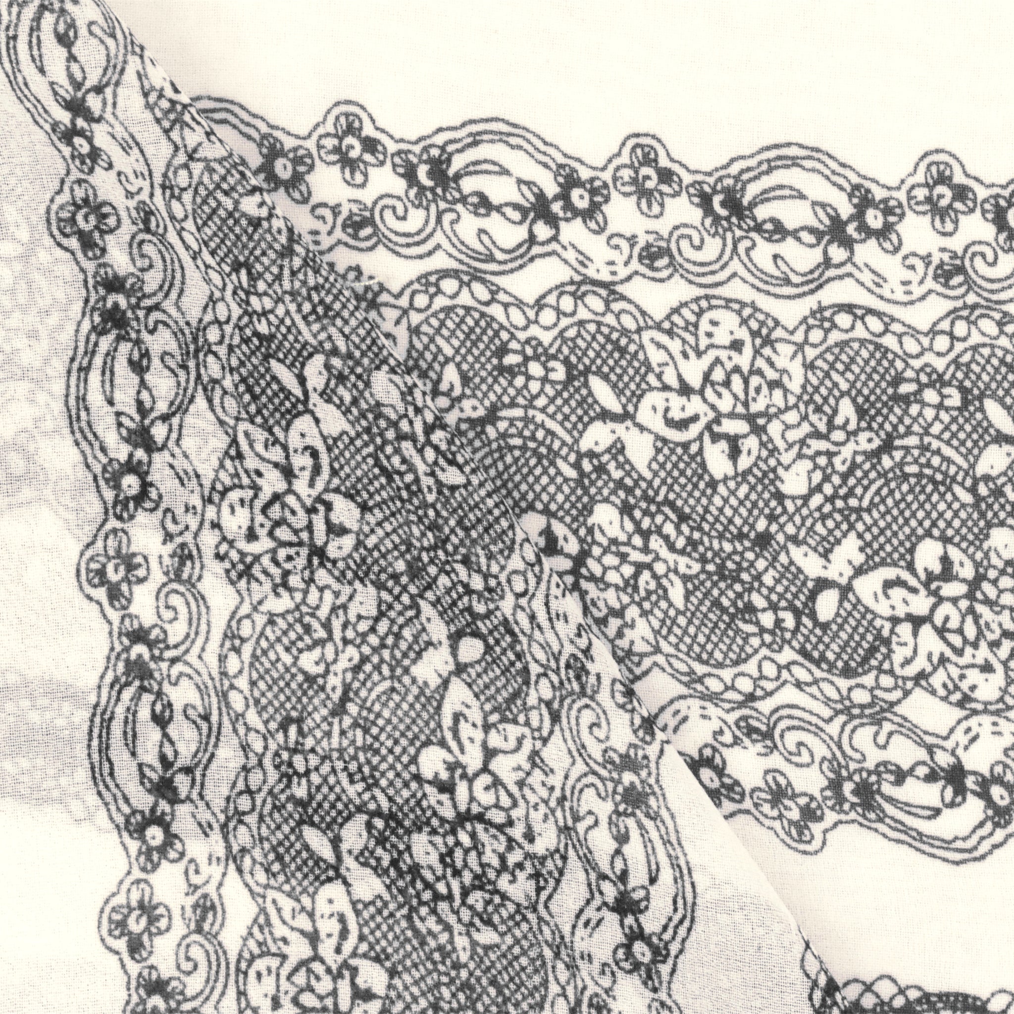 Ivory-Black Lace Stripe Printed Poly Chiffon Woven Fabric