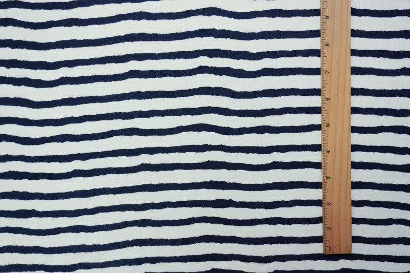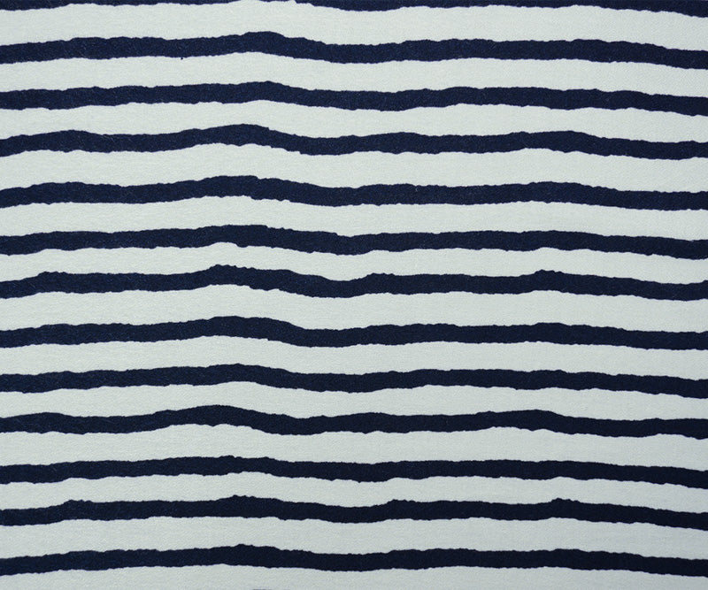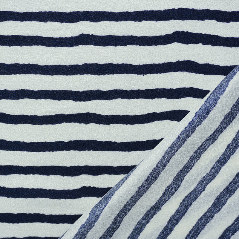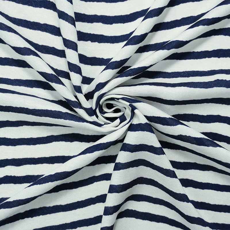 Ivory-Blue Rayon Horizontal Stripe Crepe Woven Fabric