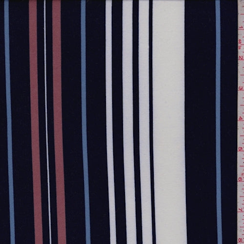 Navy/White/Mauve Stripe Double Brushed Jersey Knit Fabric
