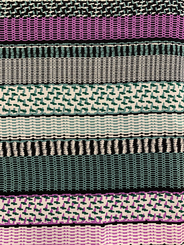 Purple and Aqua Multi Stripe Print Rayon Challis Fabric