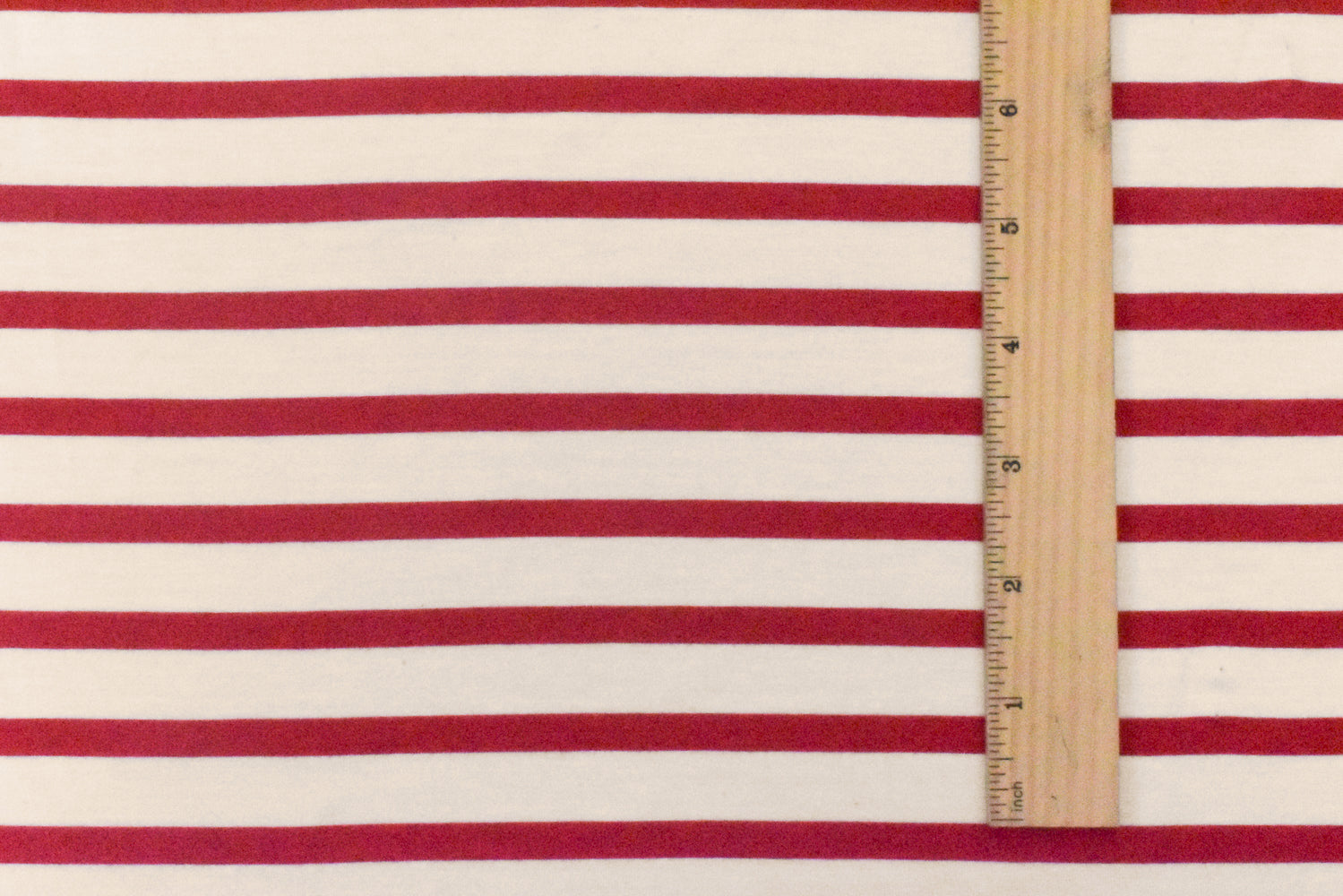 Red-Ivory Stripe Stretch Spandex Rayon Modal Jersey Knit Fabric
