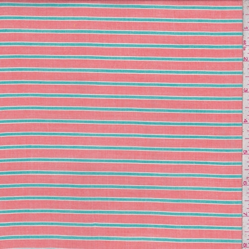 Tangerine/Blue Jade Stripe Rayon Challis Fabric