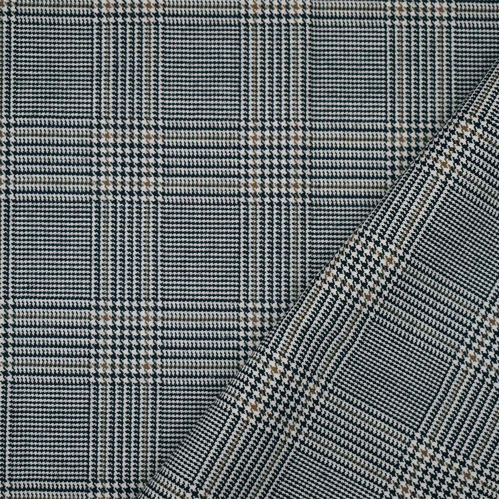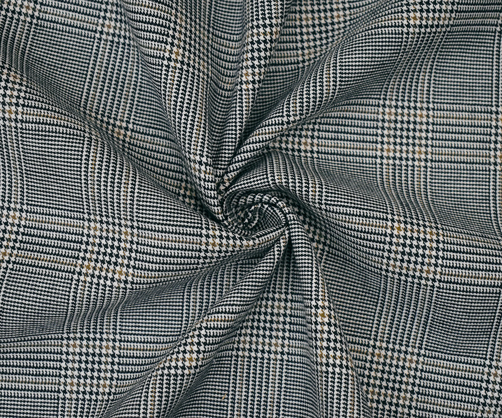 Black-Brown-White Polyester Wool Glen Plaid Woven Suiting Woven Fabric