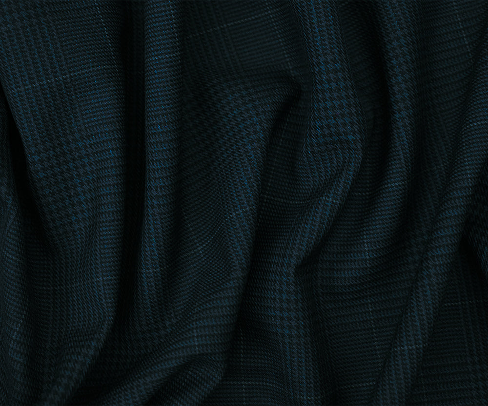 Black-Deep Teal-Multi Wool Polyester Glen Plaid Check Twill Suiting Fabric