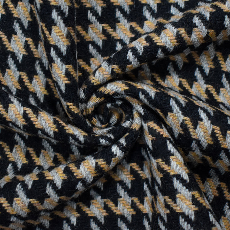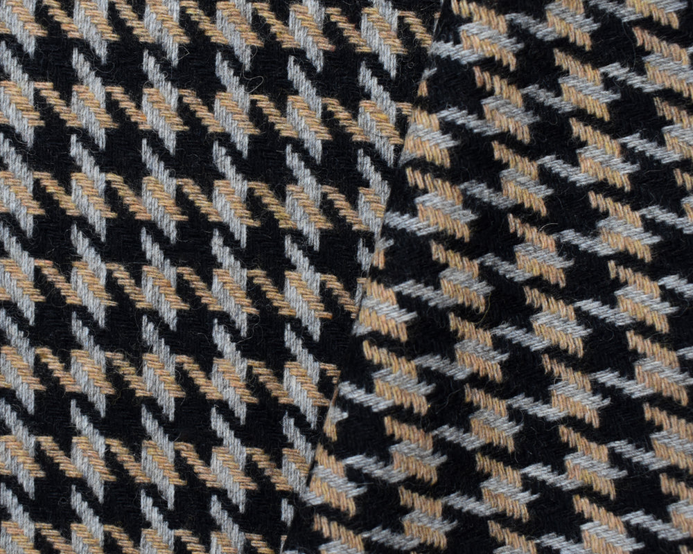 Black-Multi Wool Poly Houndstooth Twill Woven Jacketing Fabric