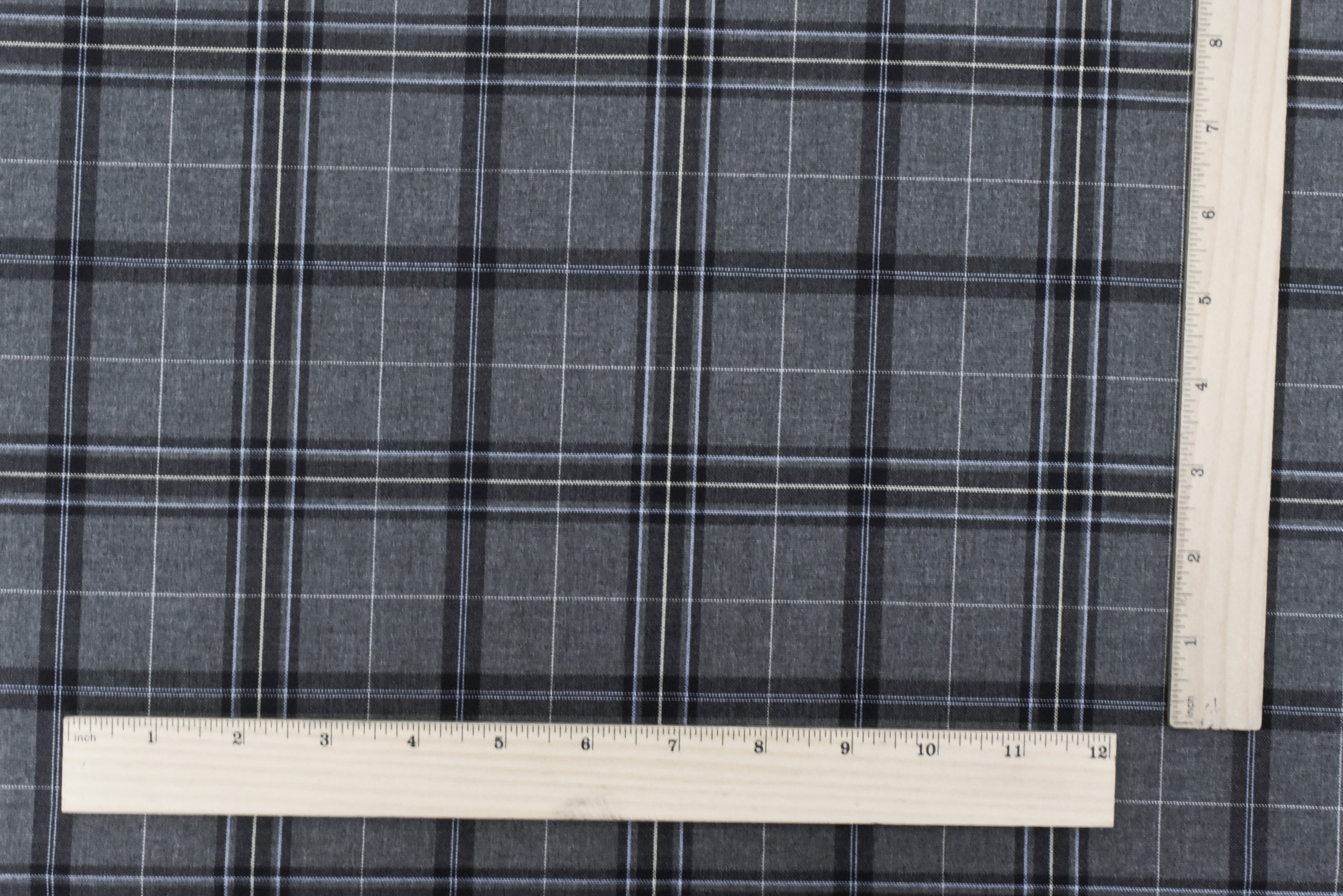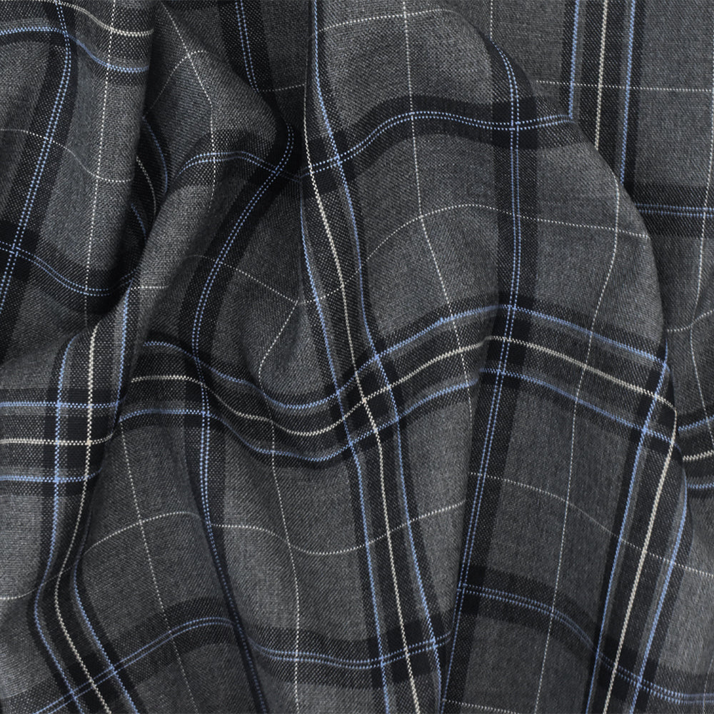 Cool Gray-Blue-Multi Plaid Wool-Poly Woven Suiting Fabric