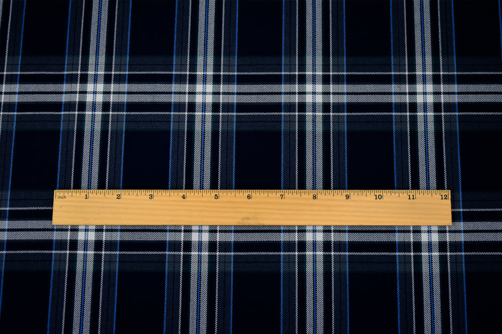 Dark Navy Blue-White-Multi Poly-Wool Plaid Twill Suiting Woven Fabric