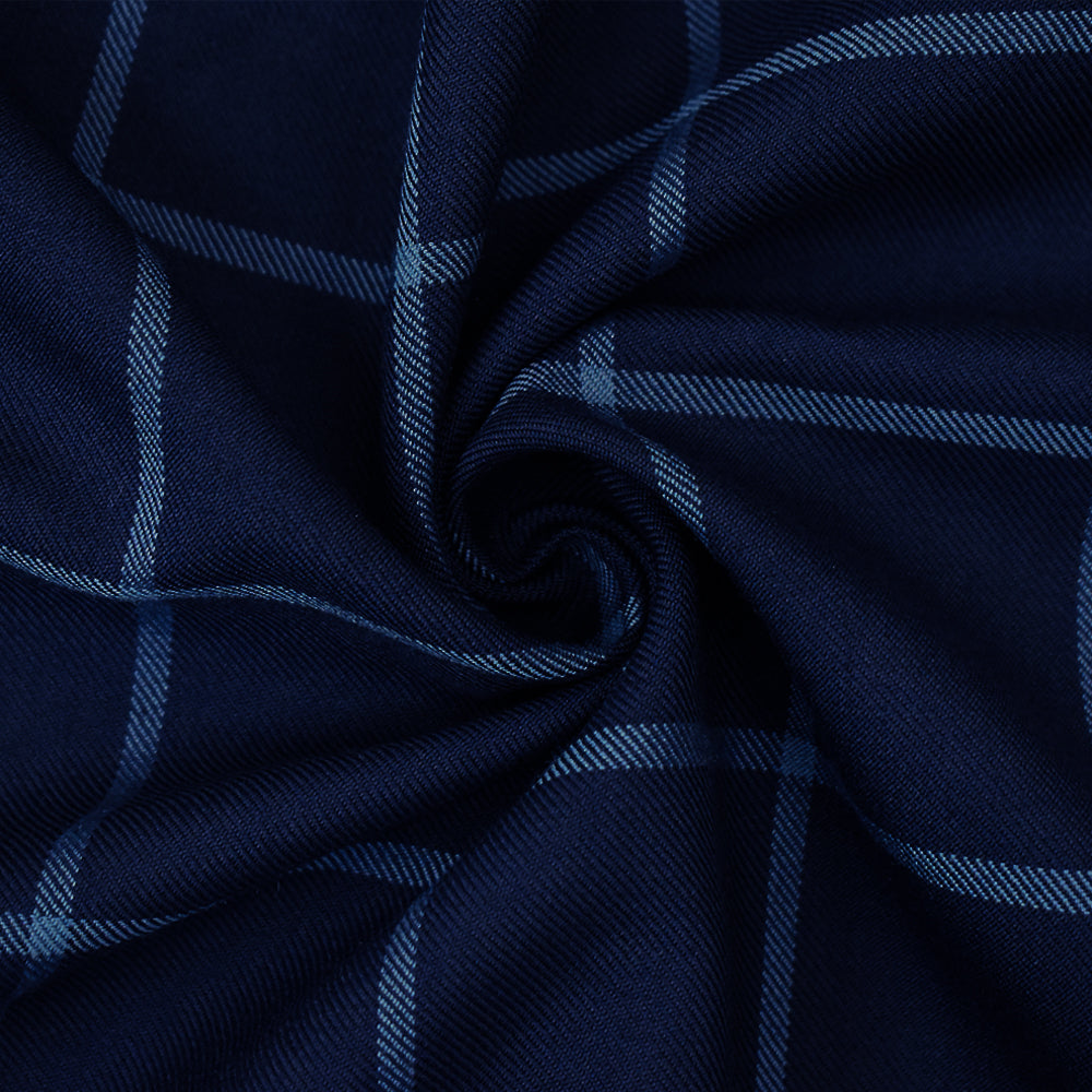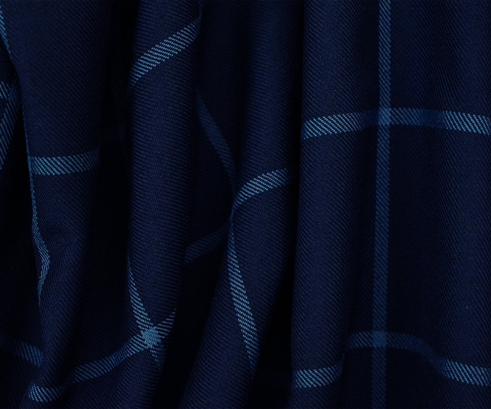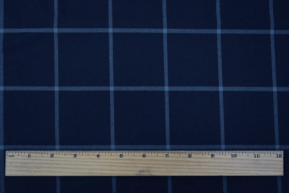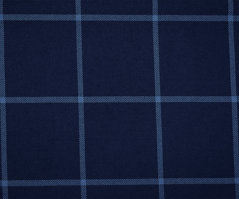 Navy-Light Blue Wool Polyester Check Twill Woven Suiting Fabric