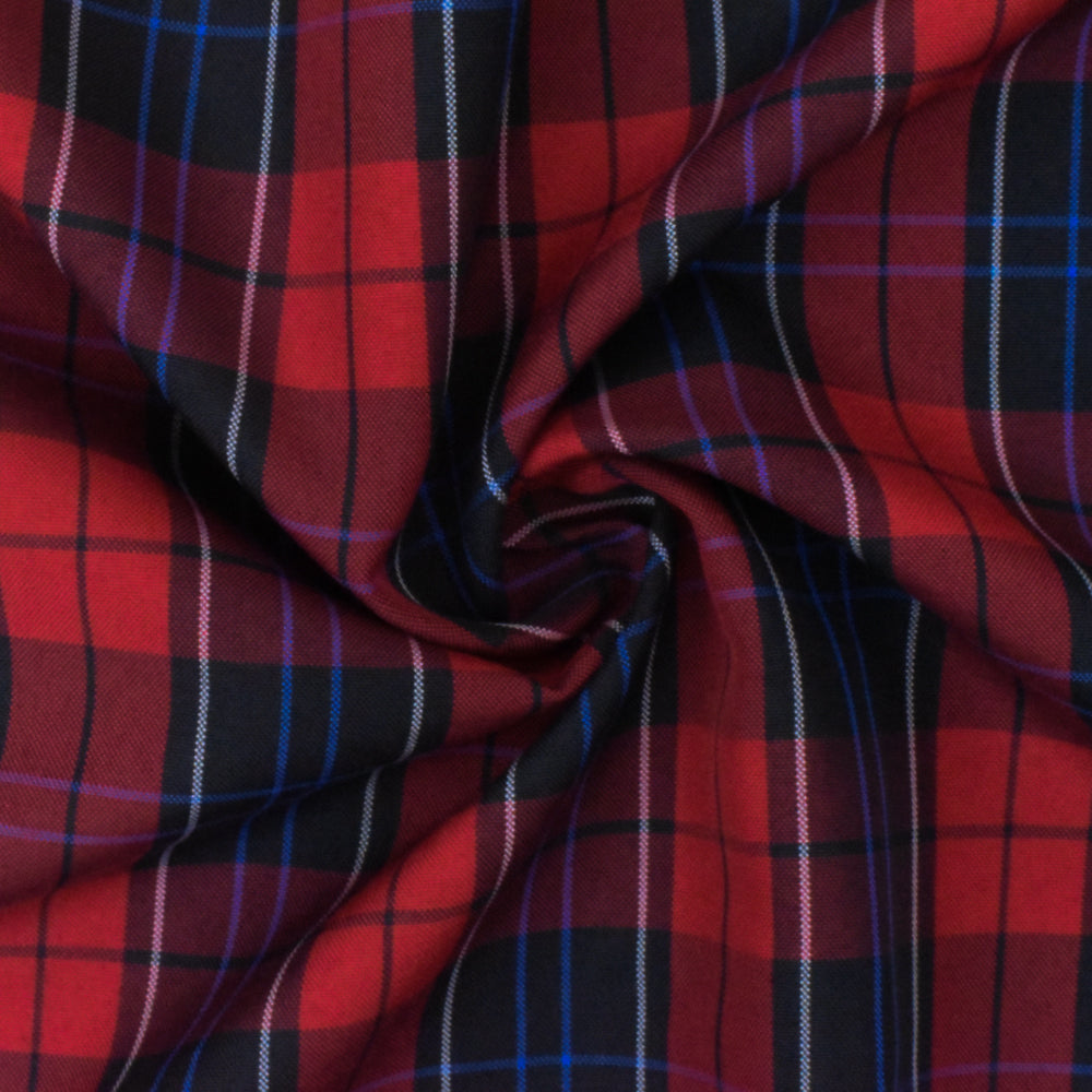 Scholar Red-Black-Multi Plaid Poly Madras Woven Suiting Fabric