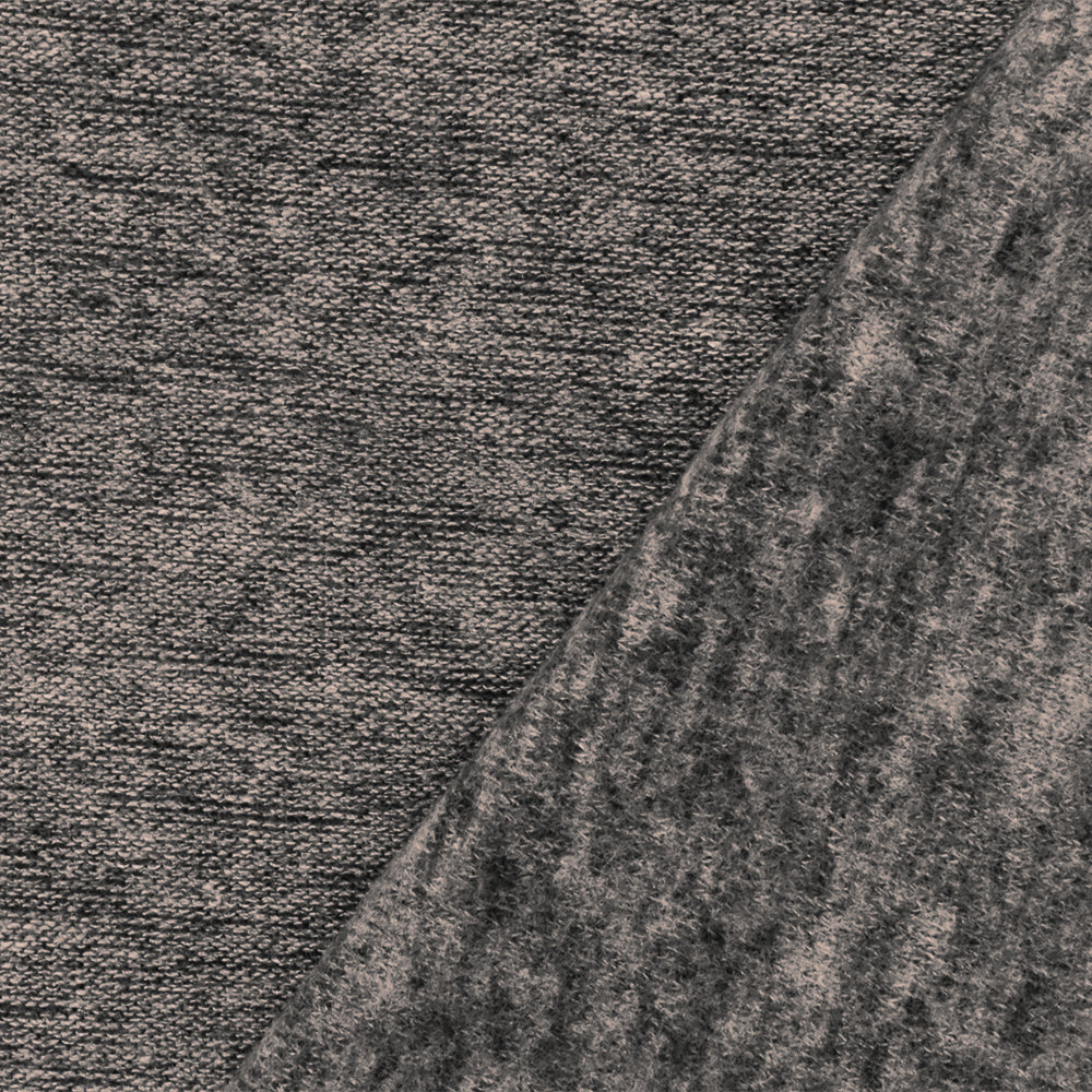 Gray-Black Slub Stretch Poly Blend Brushed Back Jersey Knit Fabric