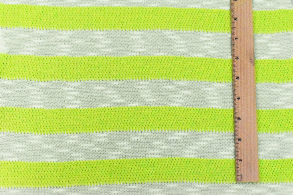 Lime Green-White Stripe Slub Poly Cotton Sweater Knit Fabric