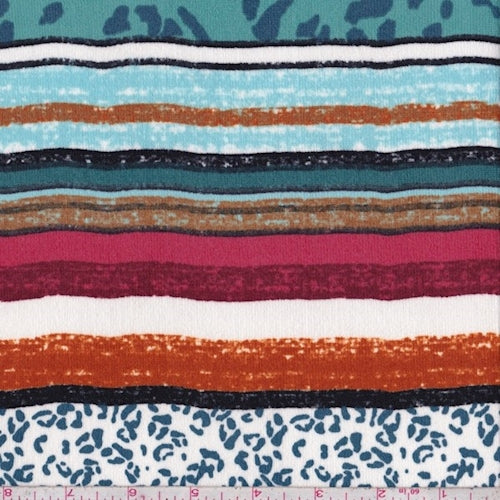 Spa Blue/Orange Multi Deco Stripe Jersey Sweater Knit Fabric