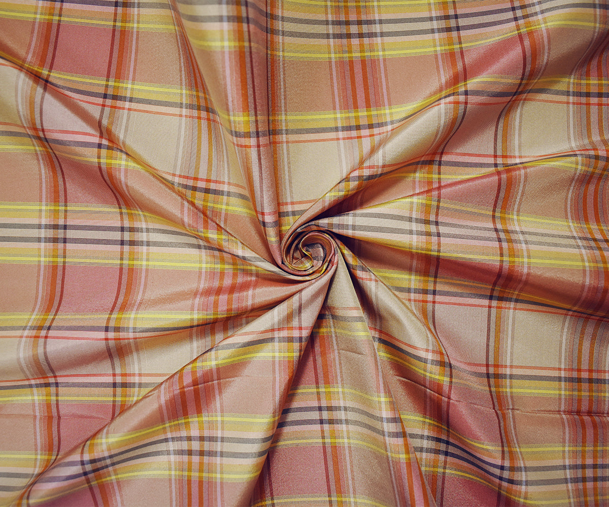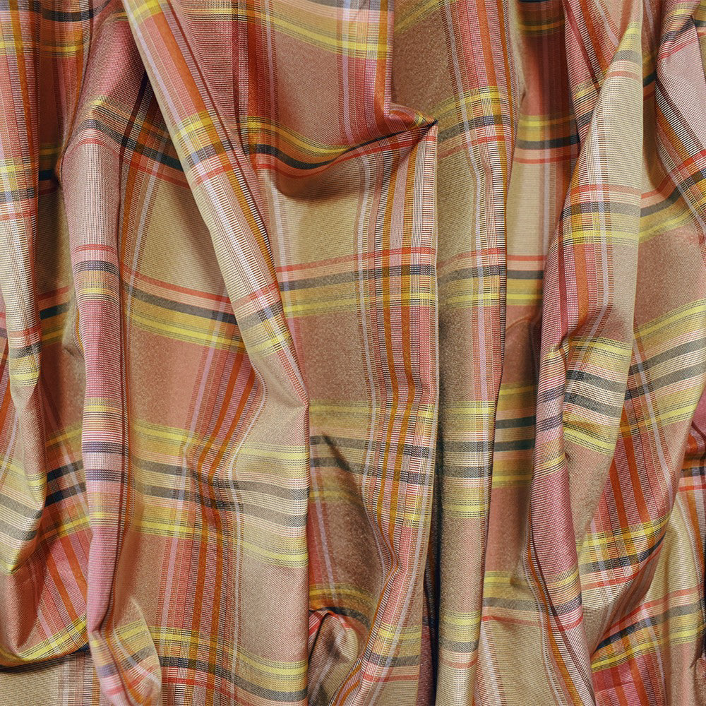 Red-Yellow-Multi Silk Iridescent Plaid Tafetta Woven Fabric