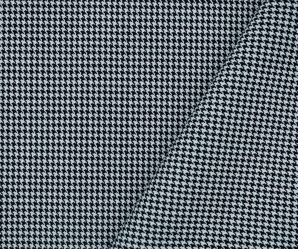 Black-Light Blue Wool-Polyester Houndstooth Woven Suiting Fabric