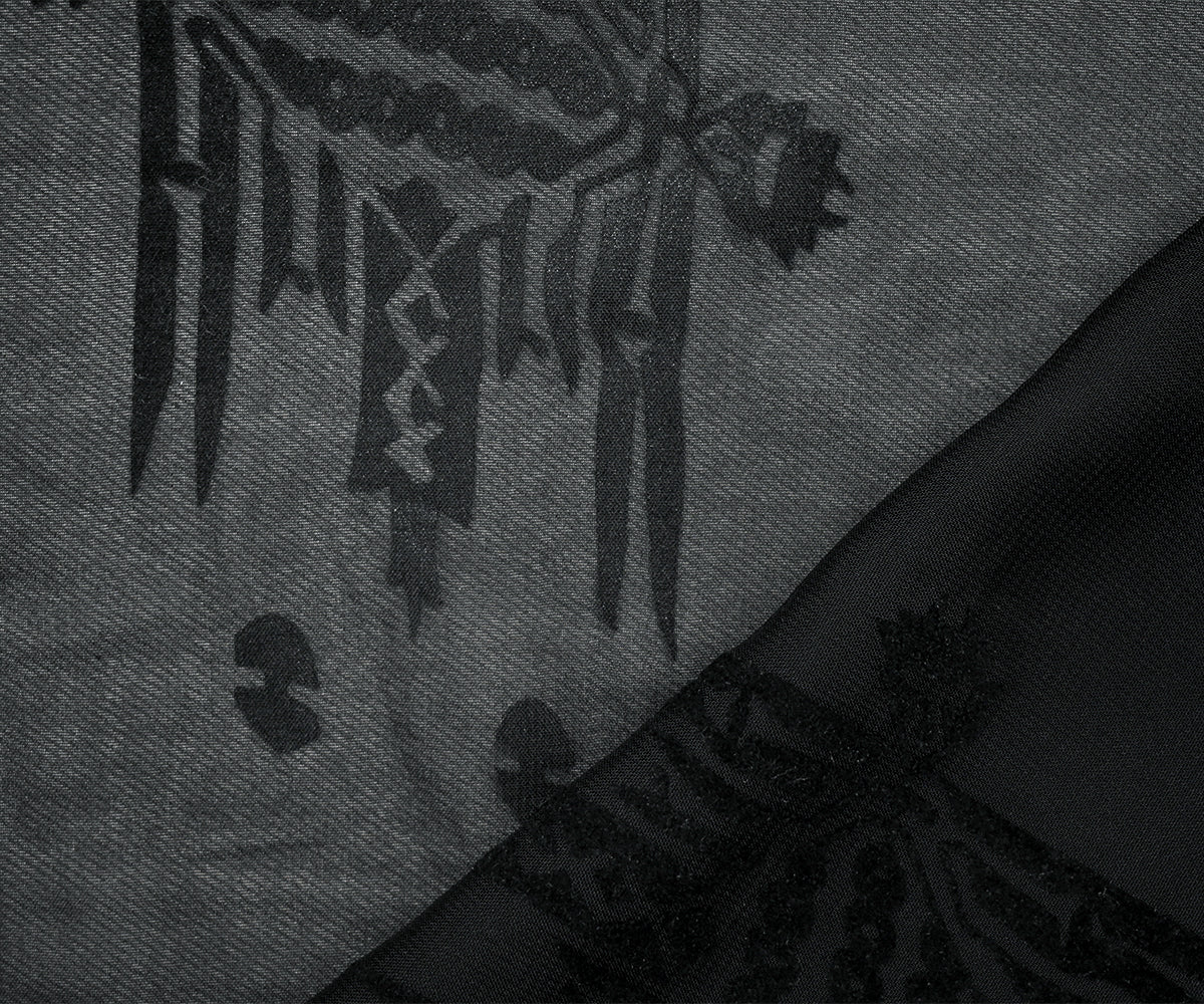 Black Poly Aztec Motif Velvet Flocked Chiffon Woven Fabric