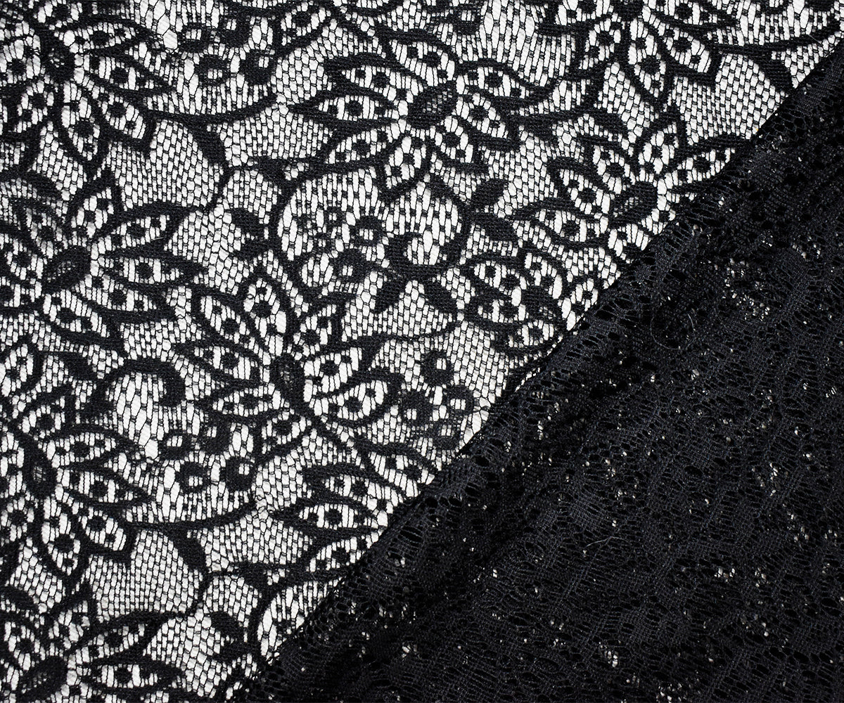 Black Poly Leaves Lace Knit Fabric