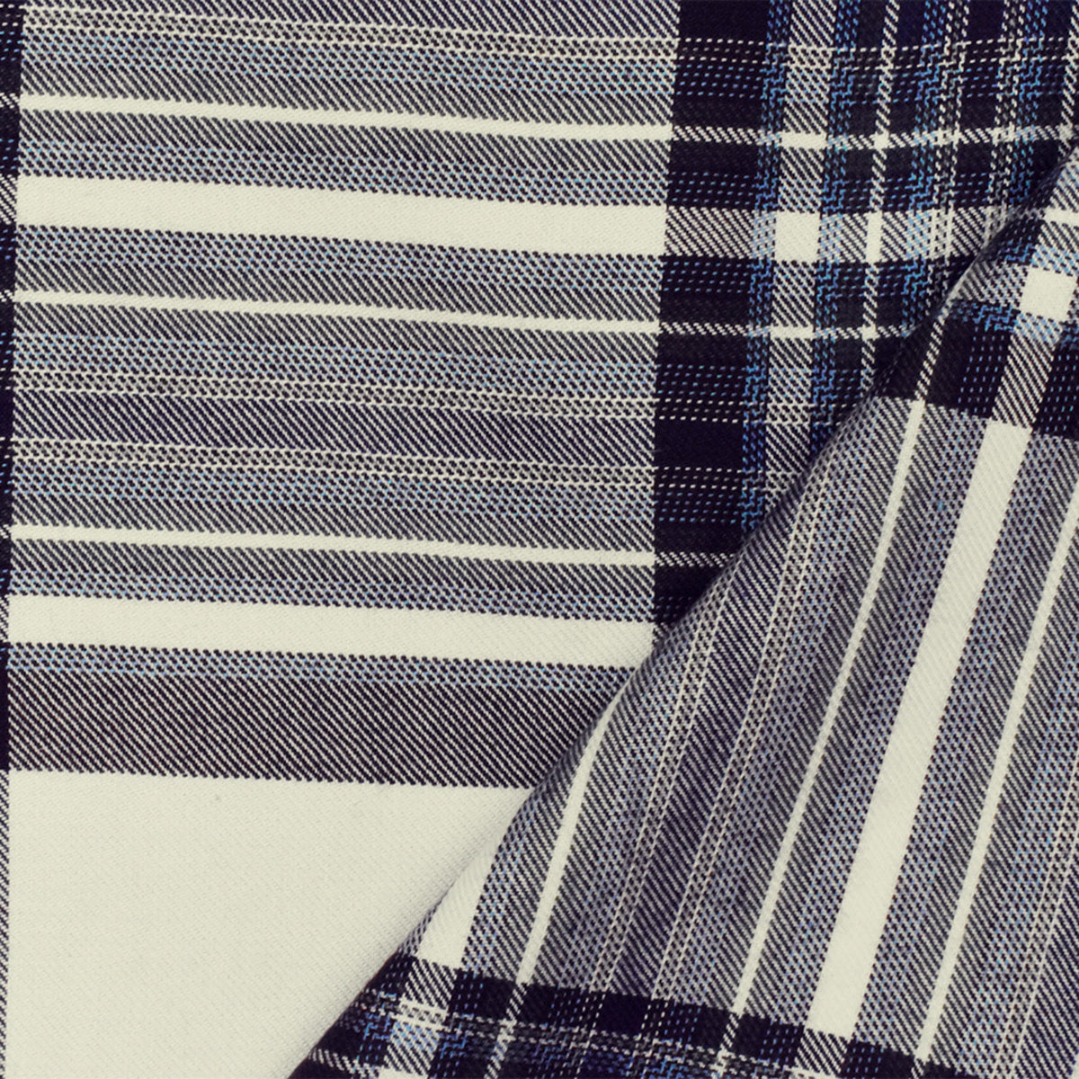 Blue-Ivory-Multi Famous Maker Cotton-Rayon Plaid Twill Shirting Woven Fabric