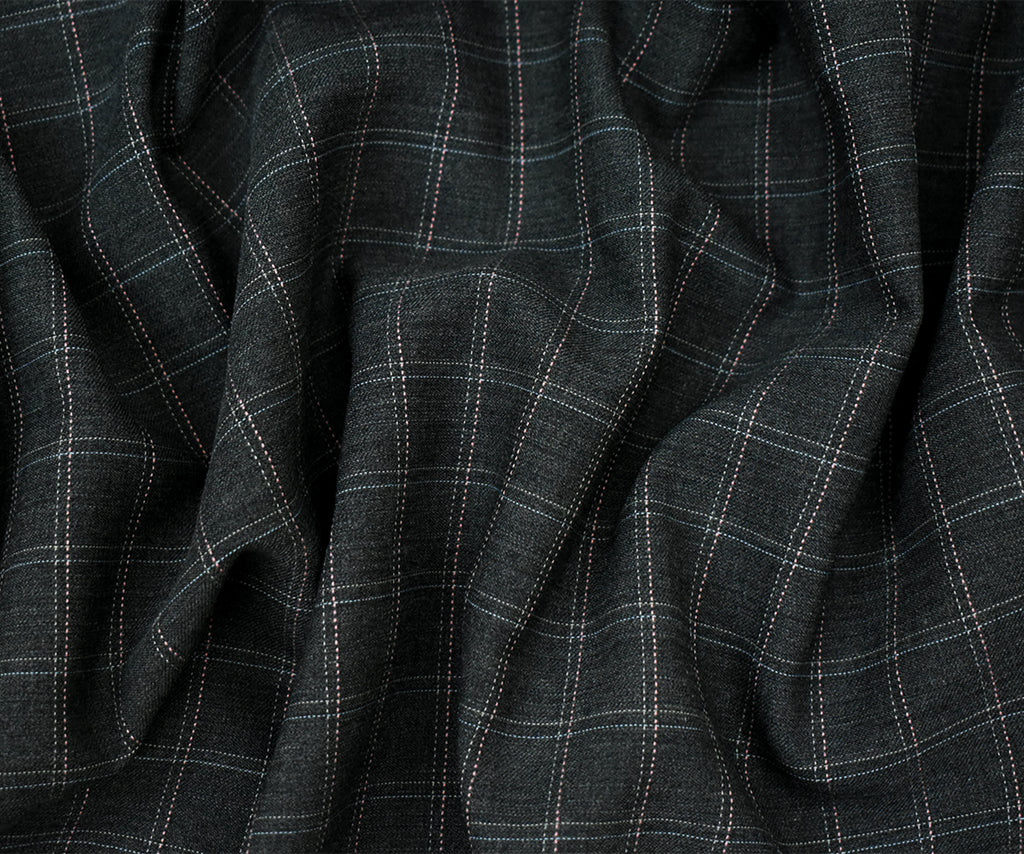 Dark Gray-Pink-Multi Wool Blend Twill Woven Shirting Fabric
