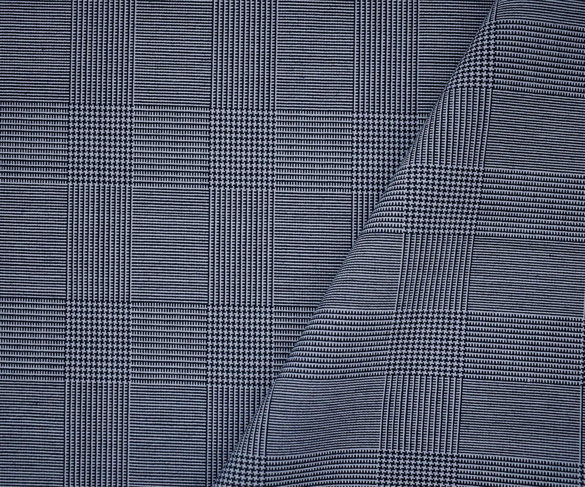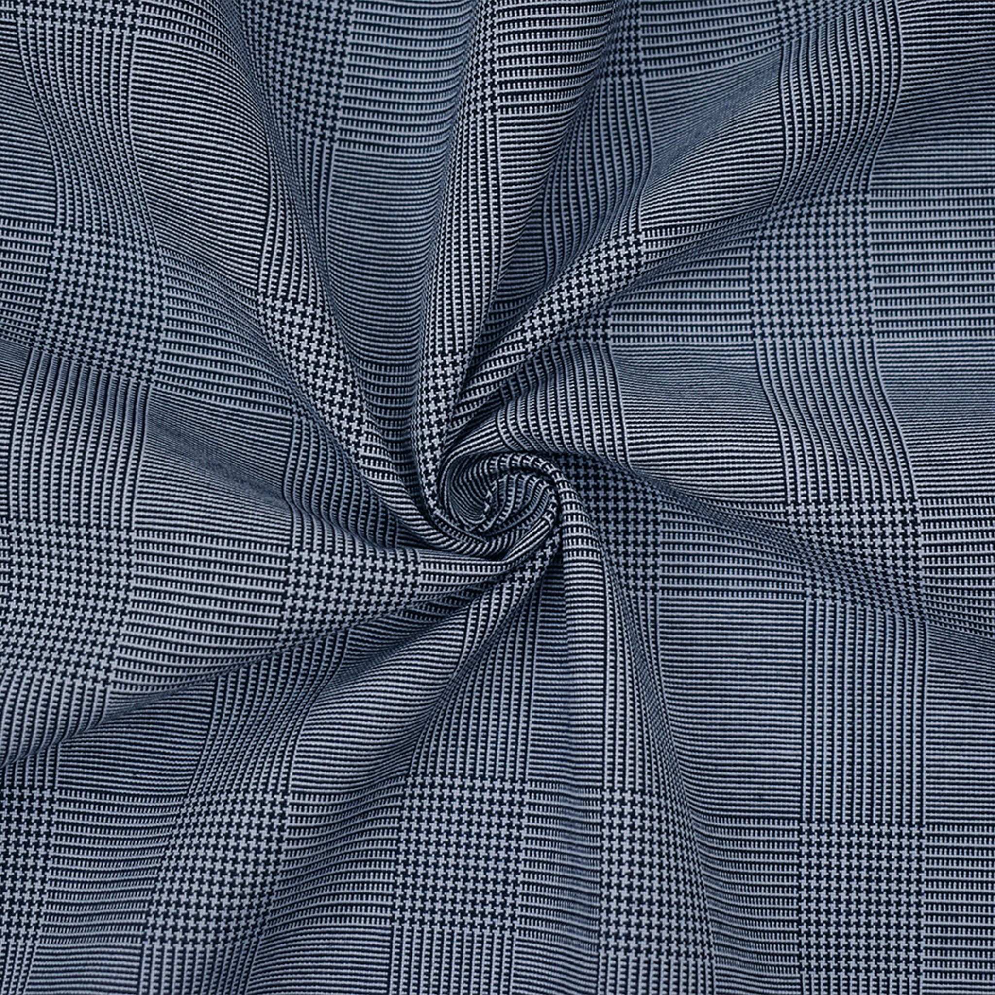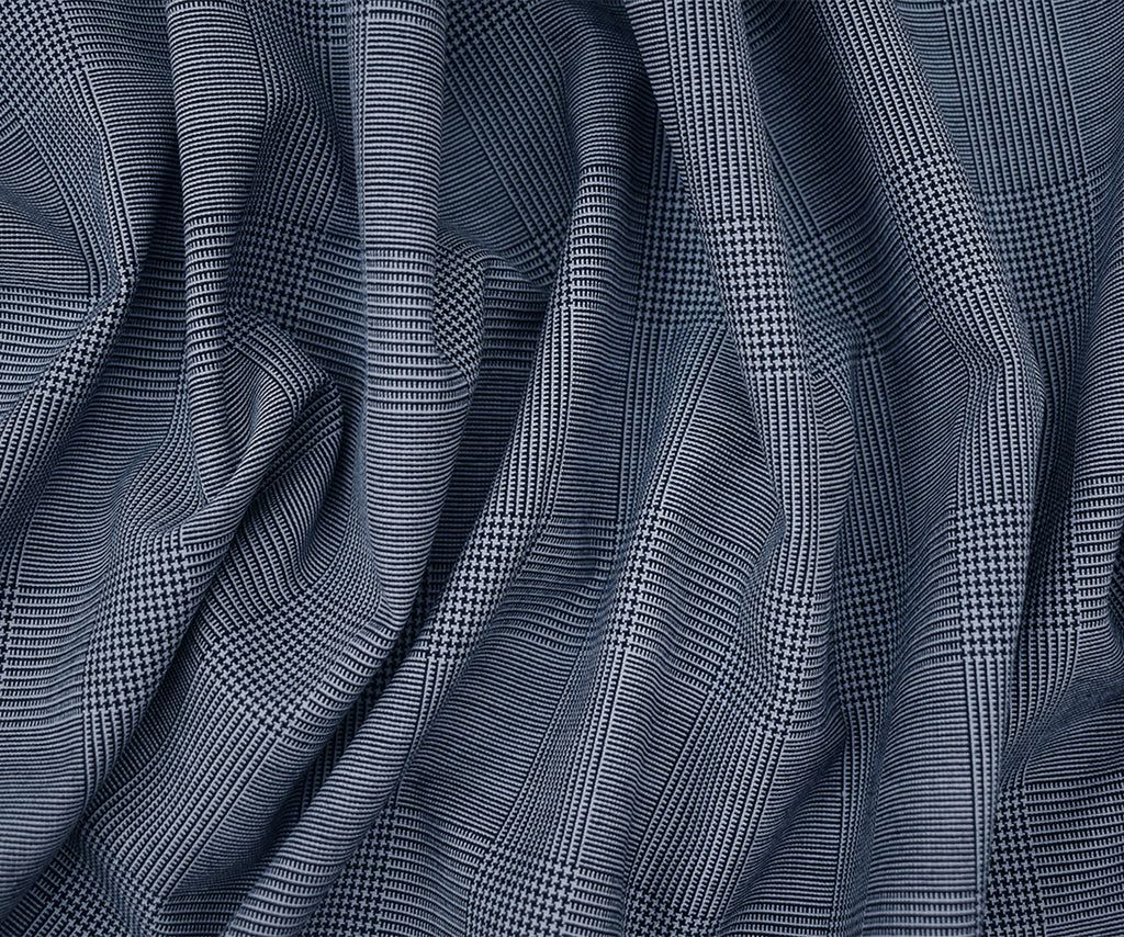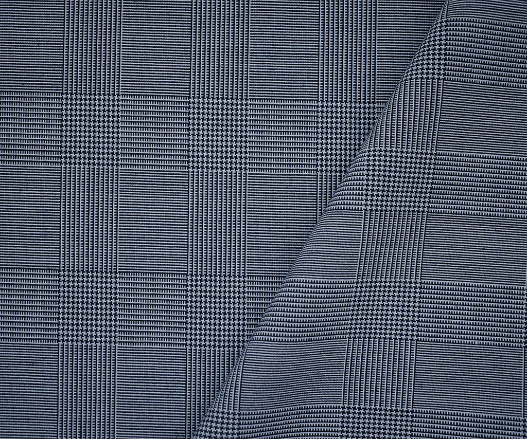Deep Navy-White Wool Poly Glen Plaid Shirting Woven Fabric