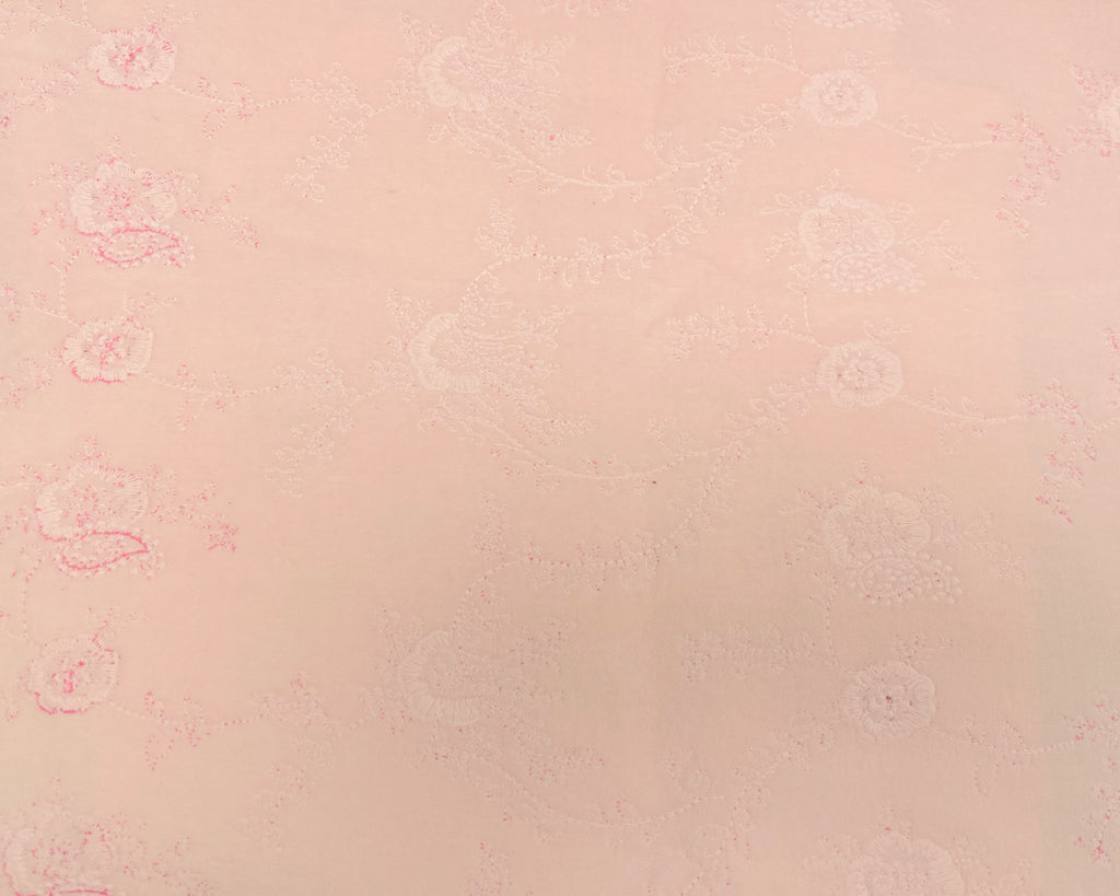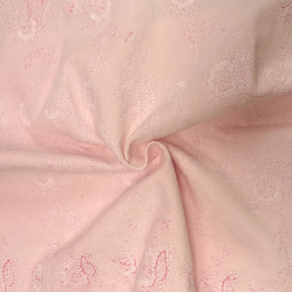 Pastel Pink Cotton Floral Embroidered Velveteen Woven Fabric