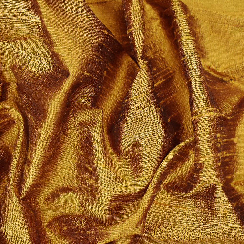 Deep Yellow-Black Silk Iridescent Dupioni Woven Fabric