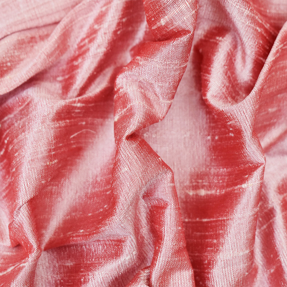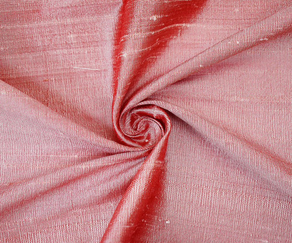 Red-White Silk Iridescent Dupioni Woven Fabric