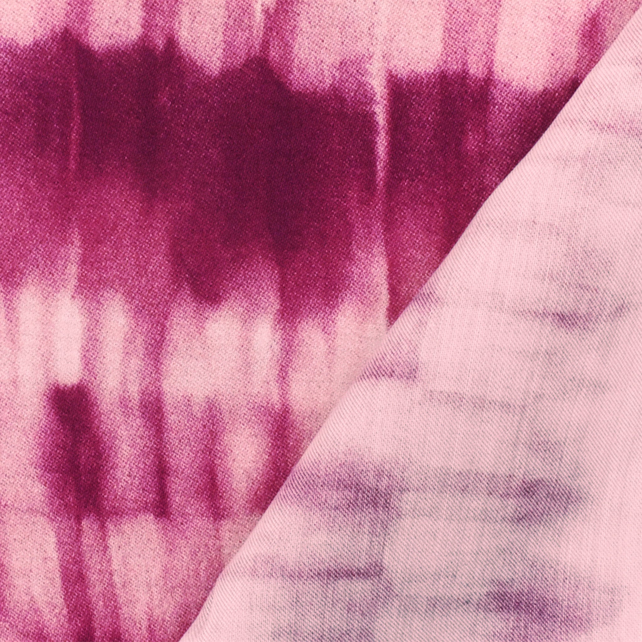 Fuchsia-Light Pink Famous Designer Viscose Tie Dyed Twill Satin Fabric