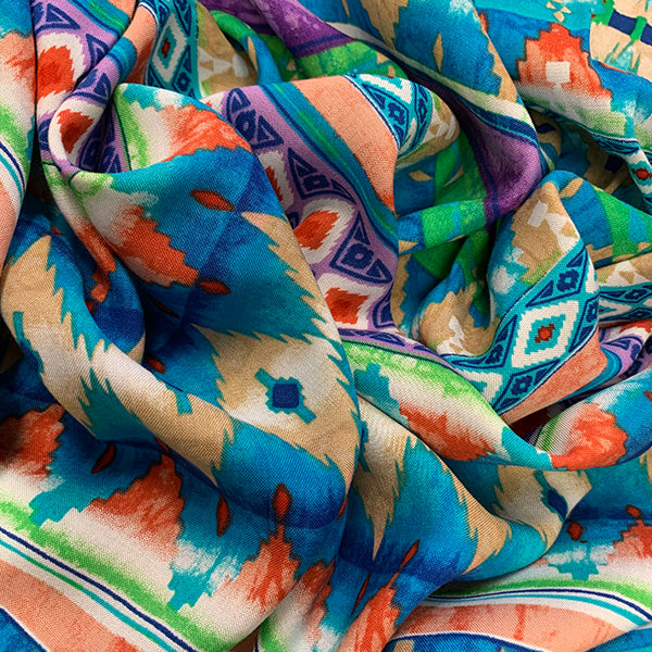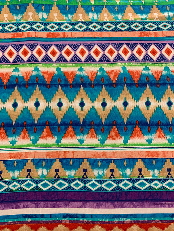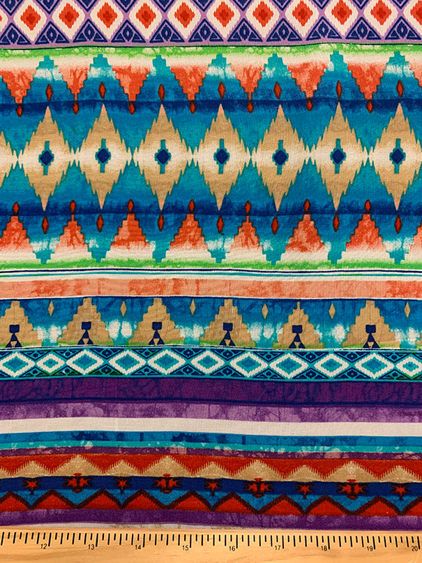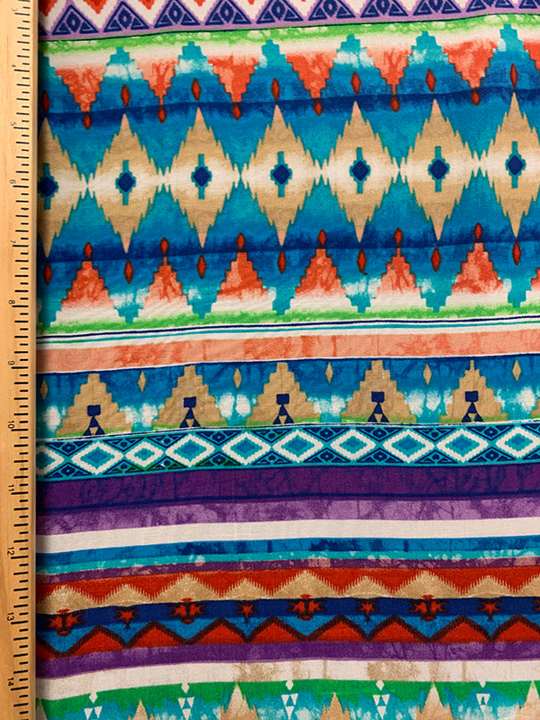 Turquoise Tie Dye Aztec Stripe Print Rayon Challis Fabric