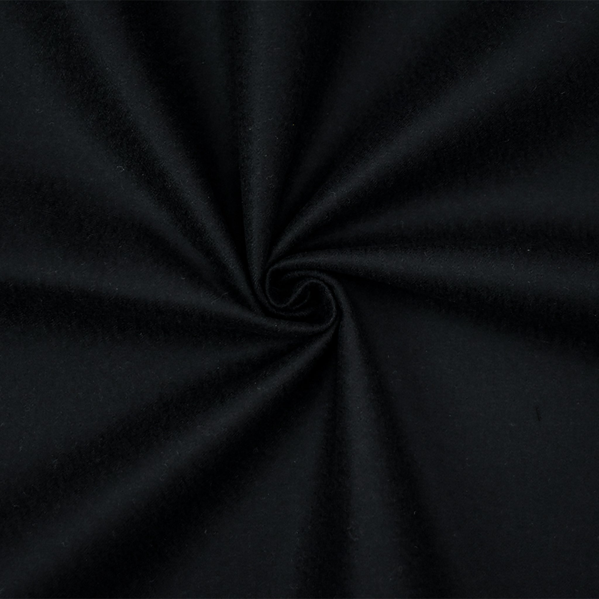 Black Melton Wool Single Sided Brushed Solid Twill Woven Jacketing Fabric