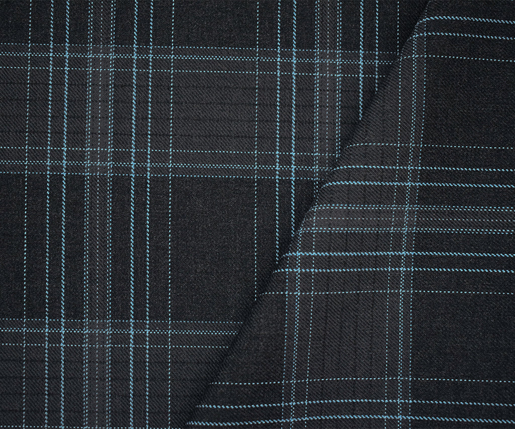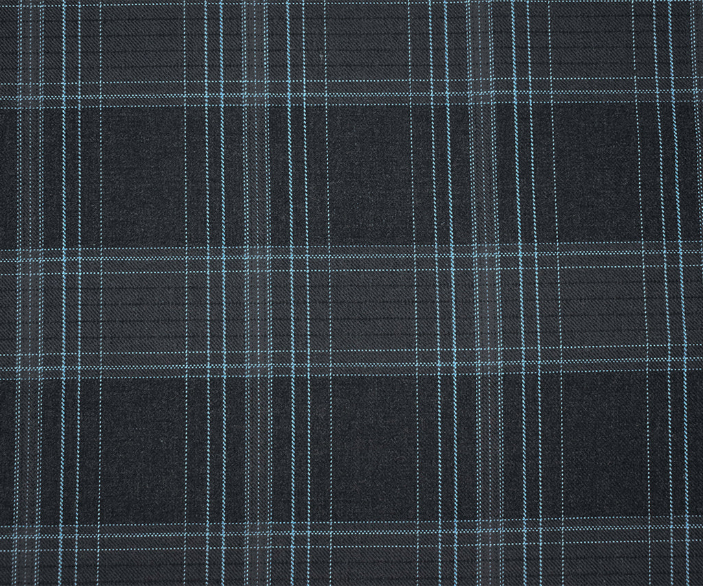 Deep Gray-Blue-White Poly Wool Plaid Woven Suiting Twill Fabric