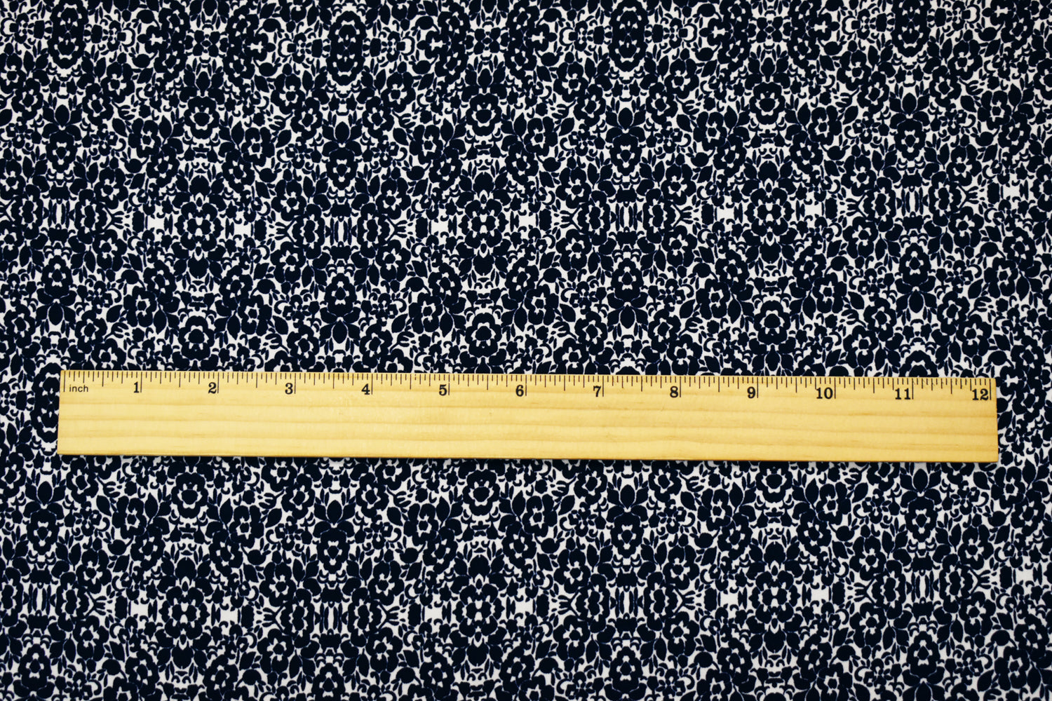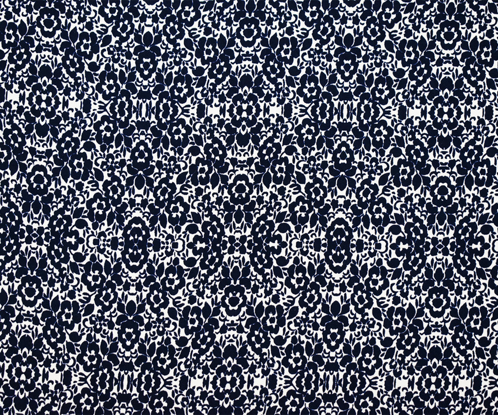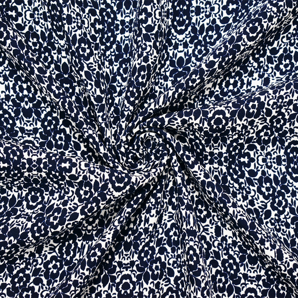 Deep Navy-White Poly Floral Printed Twill Woven Fabric