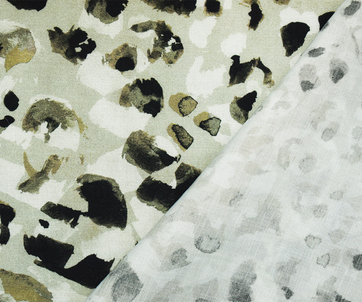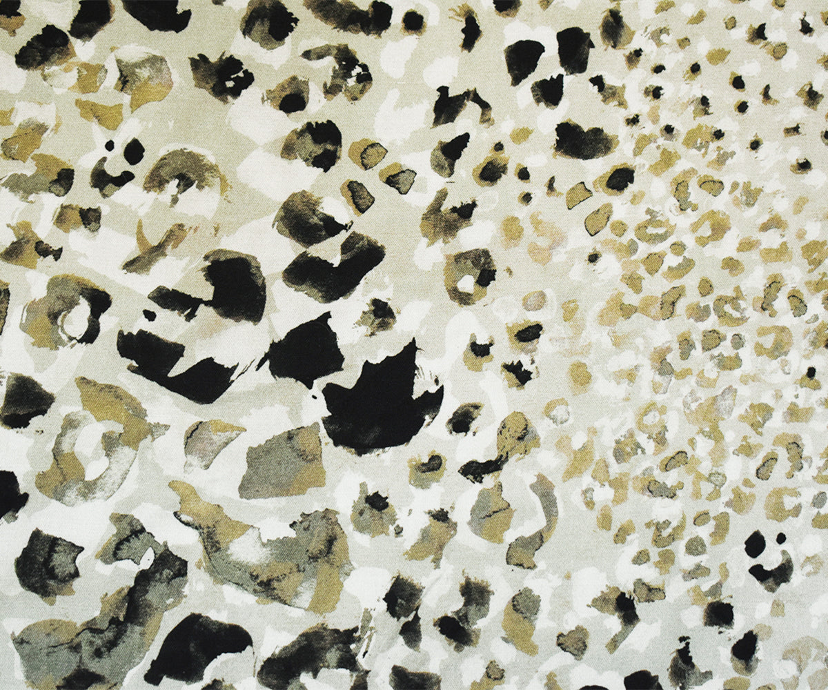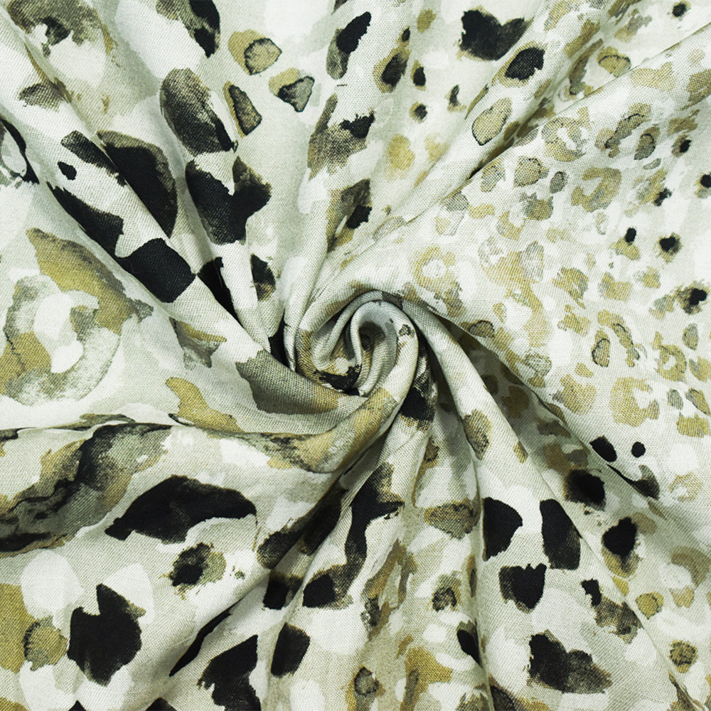 -100% Rayon twill woven fabric printed with an abstract watercolor stylized animal inspired spots pattern