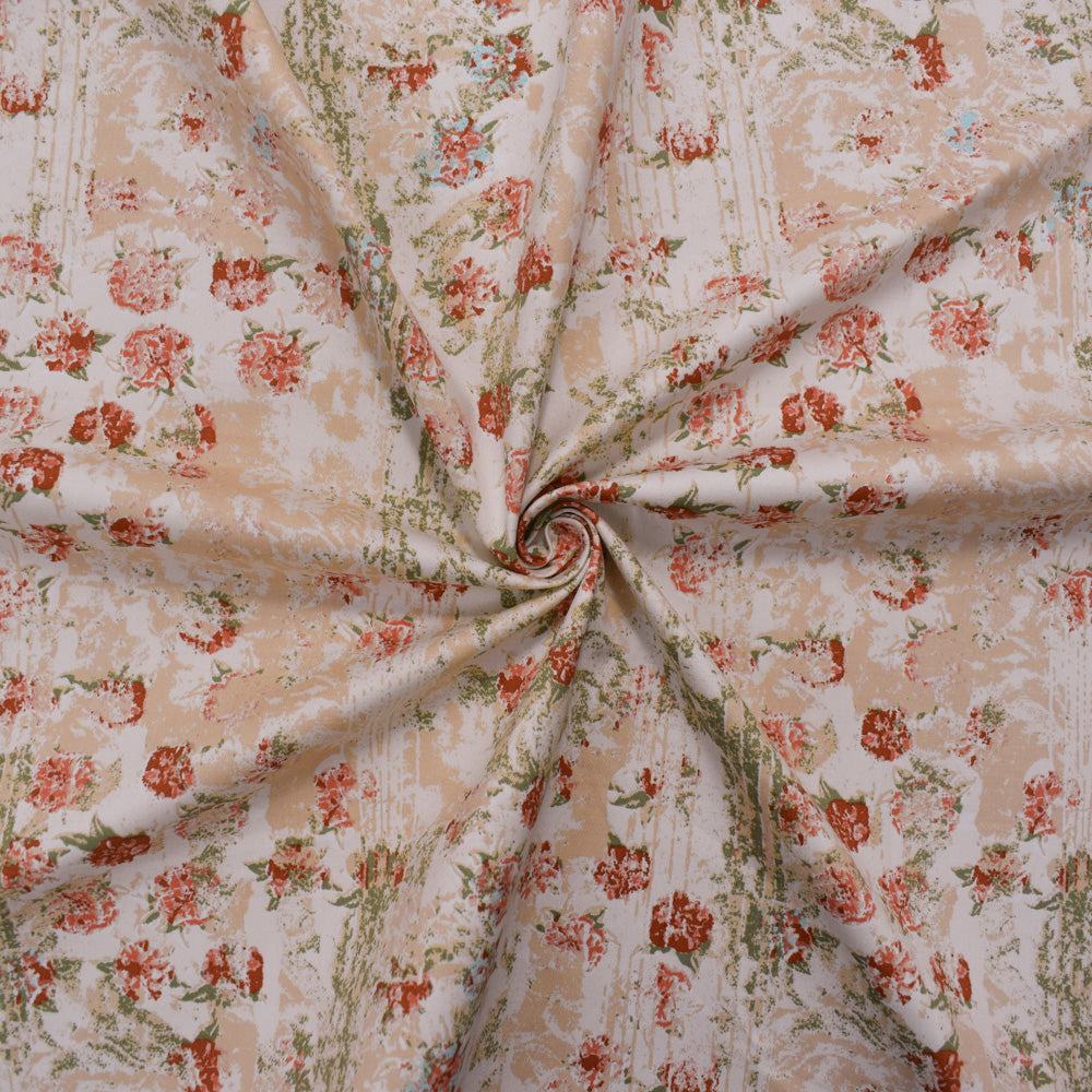 Peach-Multi Floral Texture Printed Stretch Twill Sateen Woven Fabric