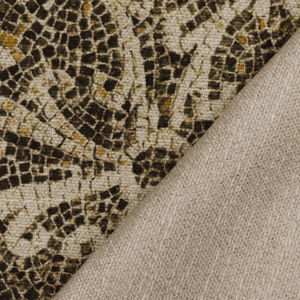 -Moroccan tile-like pattern printed on a 100% linen basket canvas woven home decorating fabric