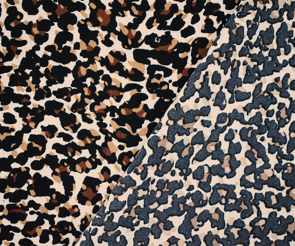 1 YD PC-Black-Multi Polyester Abstract Leopard Printed Stretch Spandex Woven Fabric
