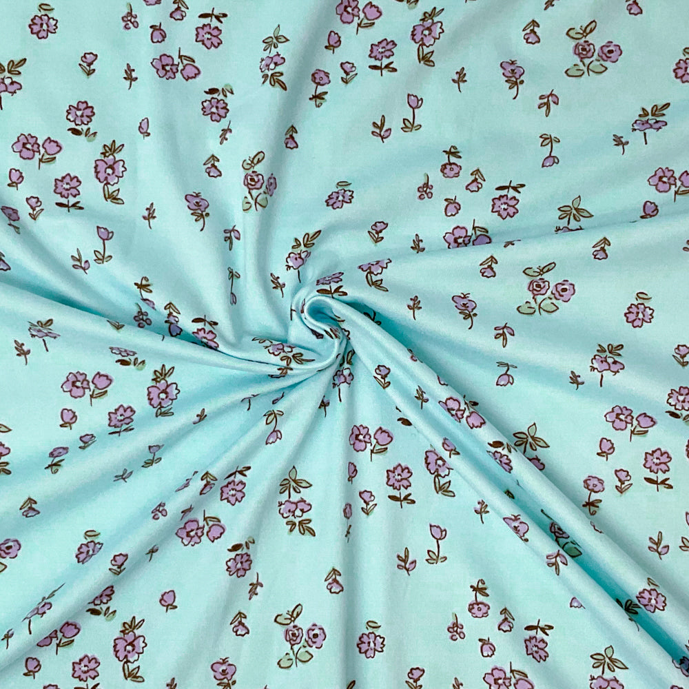 2 1/2 YD PC-Blue-Multi Poly Stretch Spandex Floral Print DB Jersey Knit Fabric