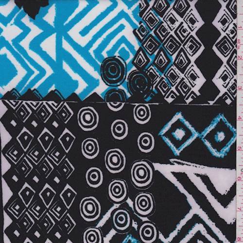 2 3/4 YD PC-Black/Aqua/White Geo Scuba Knit Fabric