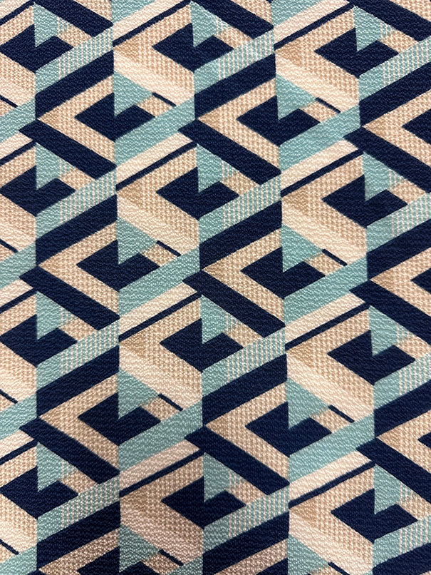 2 YD PC -Light Blue, Navy Blue, Gray, & White Multi Geometric Poly Print High Crepe Fabric