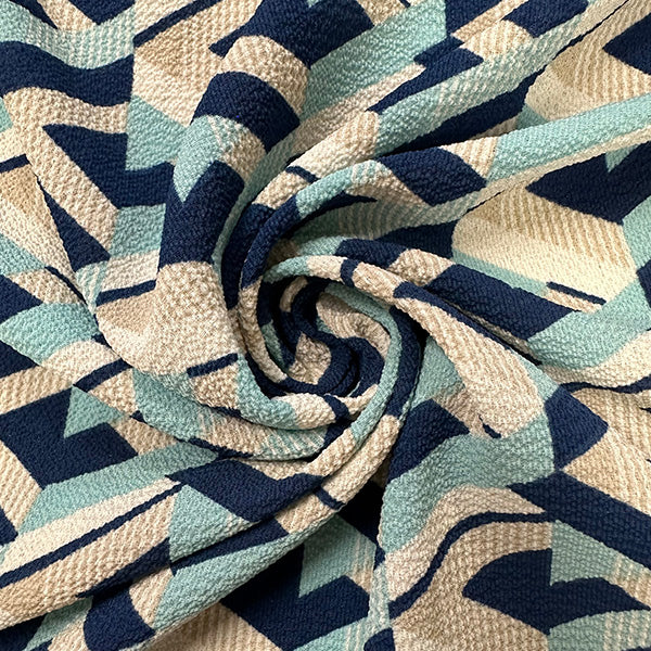 2 YD PC-Blue Multi Geometric Poly Print High Crepe Fabric