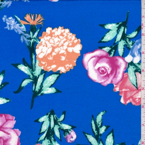 2 YD PC-Electric Blue Floral Super Brushed Jersey Knit Fabric
