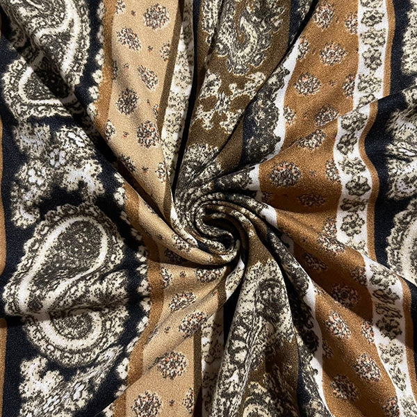 2 YD PC-Tan Paisley Stripe Print Double Brushed Knit Fabric