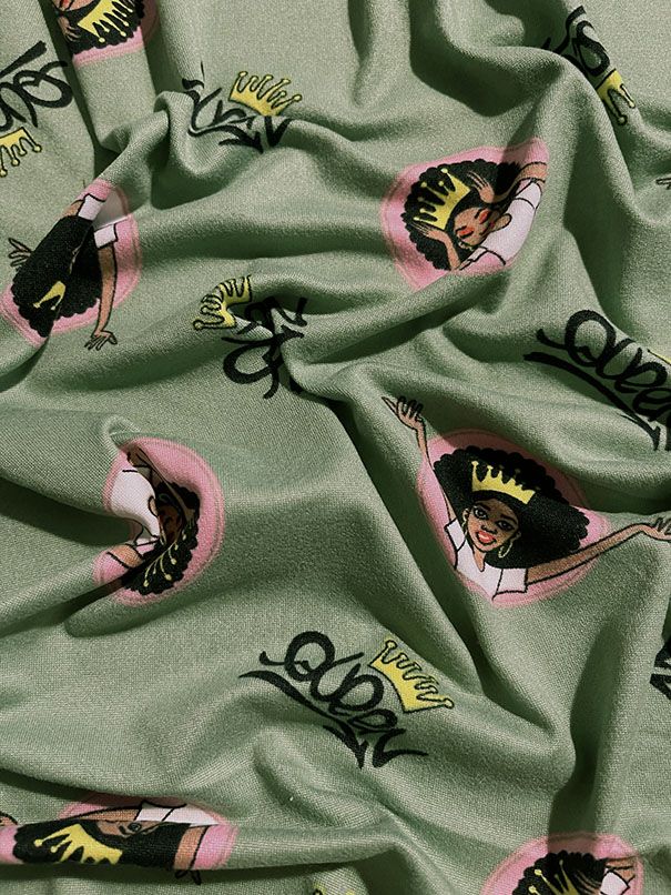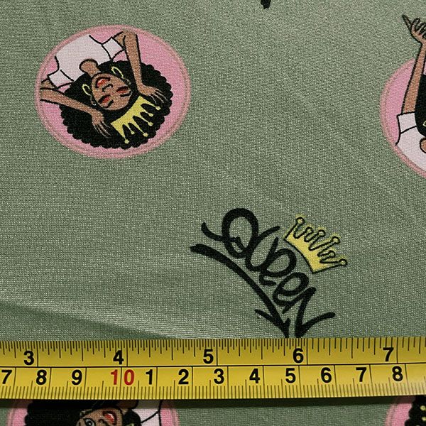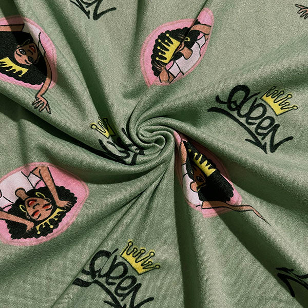 3 1/4 YD PC-Green Queen Print Double Brushed Knit Fabric