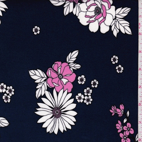 4 YD PC-Navy/Orchid Pink Floral Double Brushed Jersey Knit Fabric