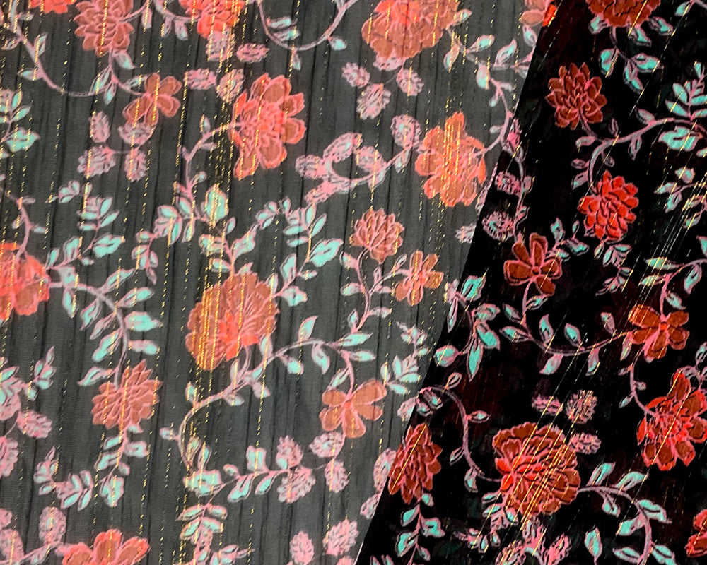 -Black-Red-Multi Poly Floral Metallic Printed Yoryu Chiffon Woven Fabric